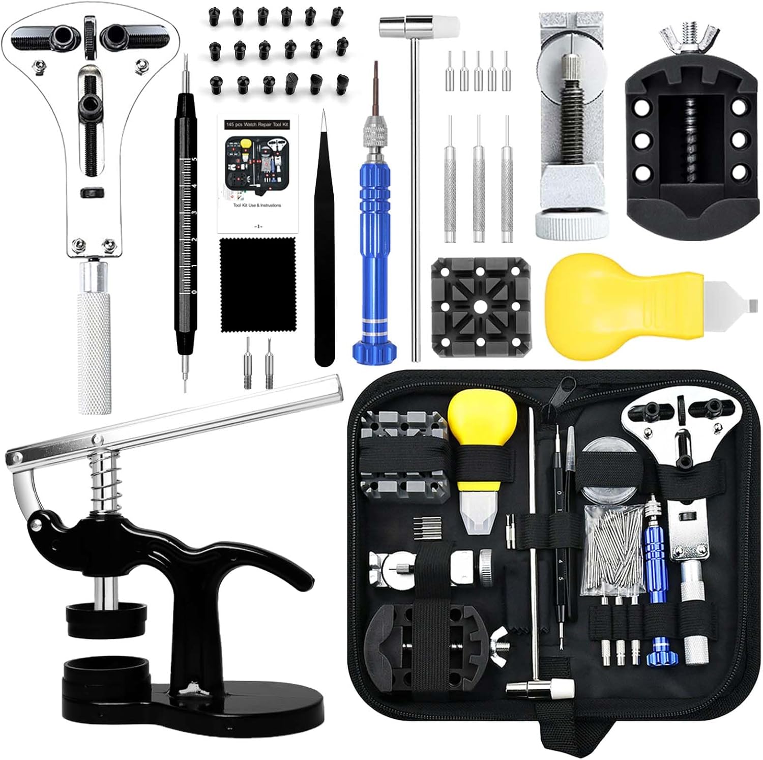 - 【Multifunktionale Uhren-Reparatur-Werkzeuge & Kits】Gldcapa umfassendes Uhren-Reparatur-Set enthält ein komplettes Set von 145-teiligen Uhren-Reparatur-Werkzeug-Set, 13-teiliges Uhren-Presswerkzeug, das die meisten Uhrenreparatur-Anforderungen löst,