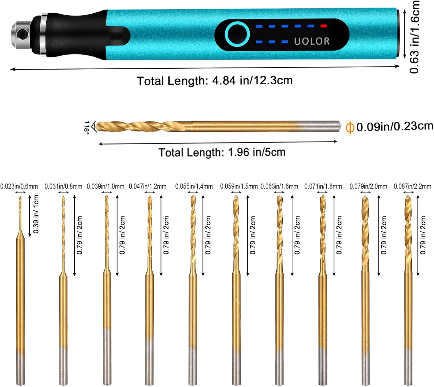 - 【Tragbares USB-Aufladen】Geniessen Sie die Bequemlichkeit des Aufladens überall mit dem Uolor elektrischen Bohr-Stift. Dank seiner USB-Aufladefähigkeit ermöglicht er kabellosen Betrieb für bis zu 30 Minuten nach einer vollständigen Ladung.