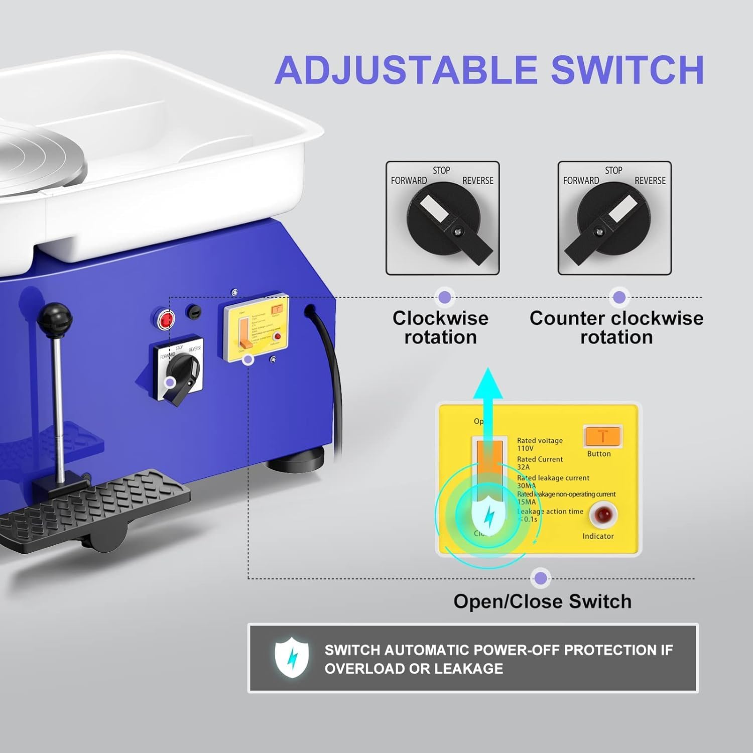 - 【Zwei-Richtungs-Rad】Ein benutzerfreundliches Interface ermöglicht sowohl eine Rechts- als auch eine Linksdrehung. Perfekt für Anfänger und ein tiefer Tauchgang für erfahrene Töpferenthusiasten.