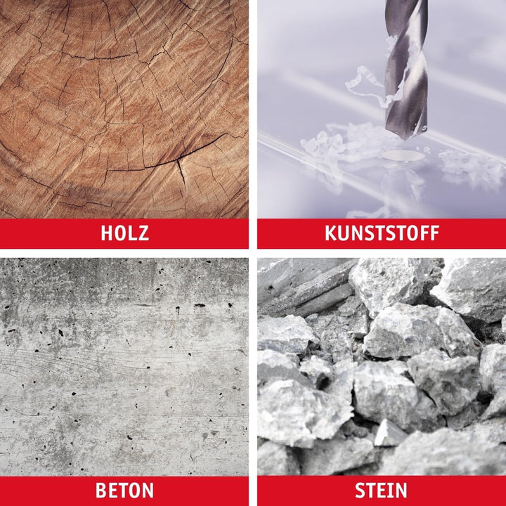 - Leistungsstarker 910-Watt-Motor: Der kraftvolle Motor ermöglicht müheloses Durchbohren von Materialien wie Holz, Metall und Beton, selbst bei anspruchsvolleren Arbeiten an Stein und Granit.