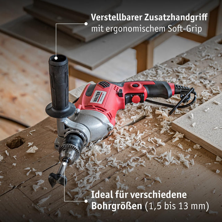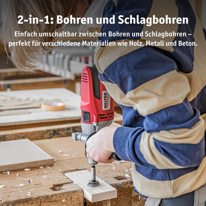 - Robust und benutzerfreundlich: Das kompakte Design macht die WALTER Schlagbohrmaschine ideal für den Hausgebrauch und bietet eine einfache Bedienung, die auch ambitionierte Heimwerker überzeugt.