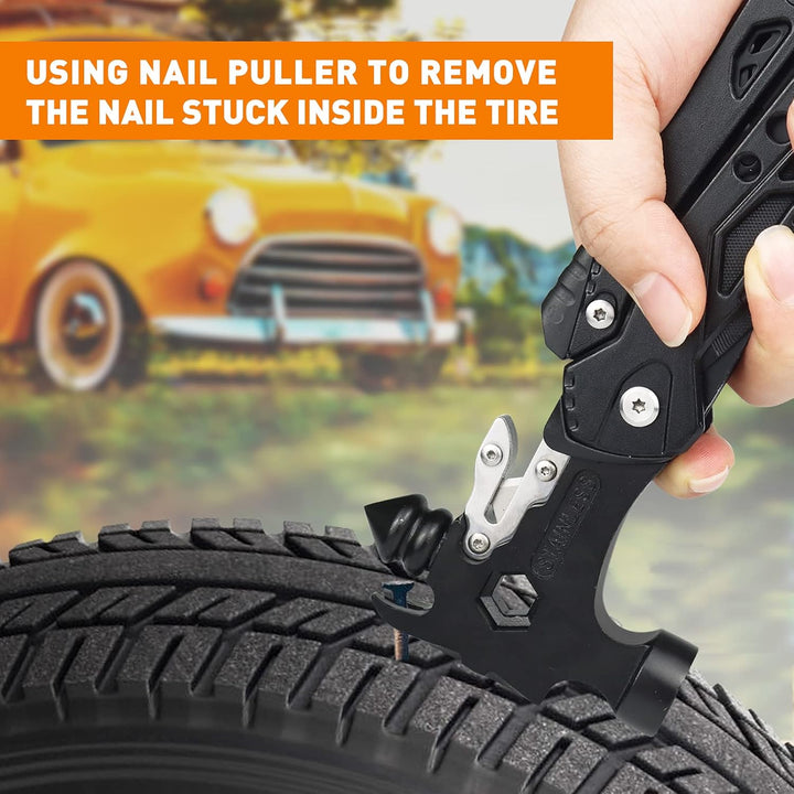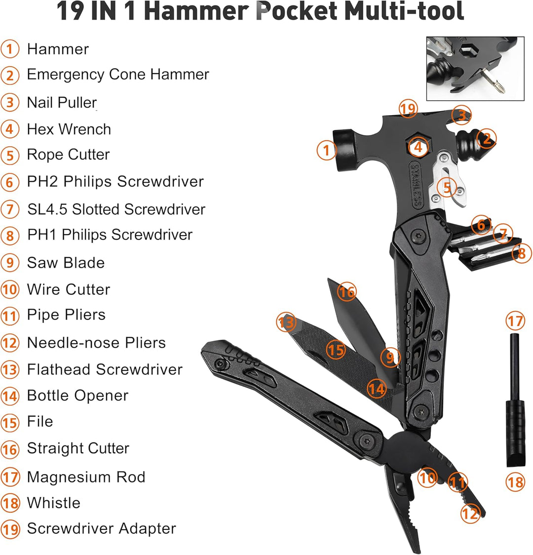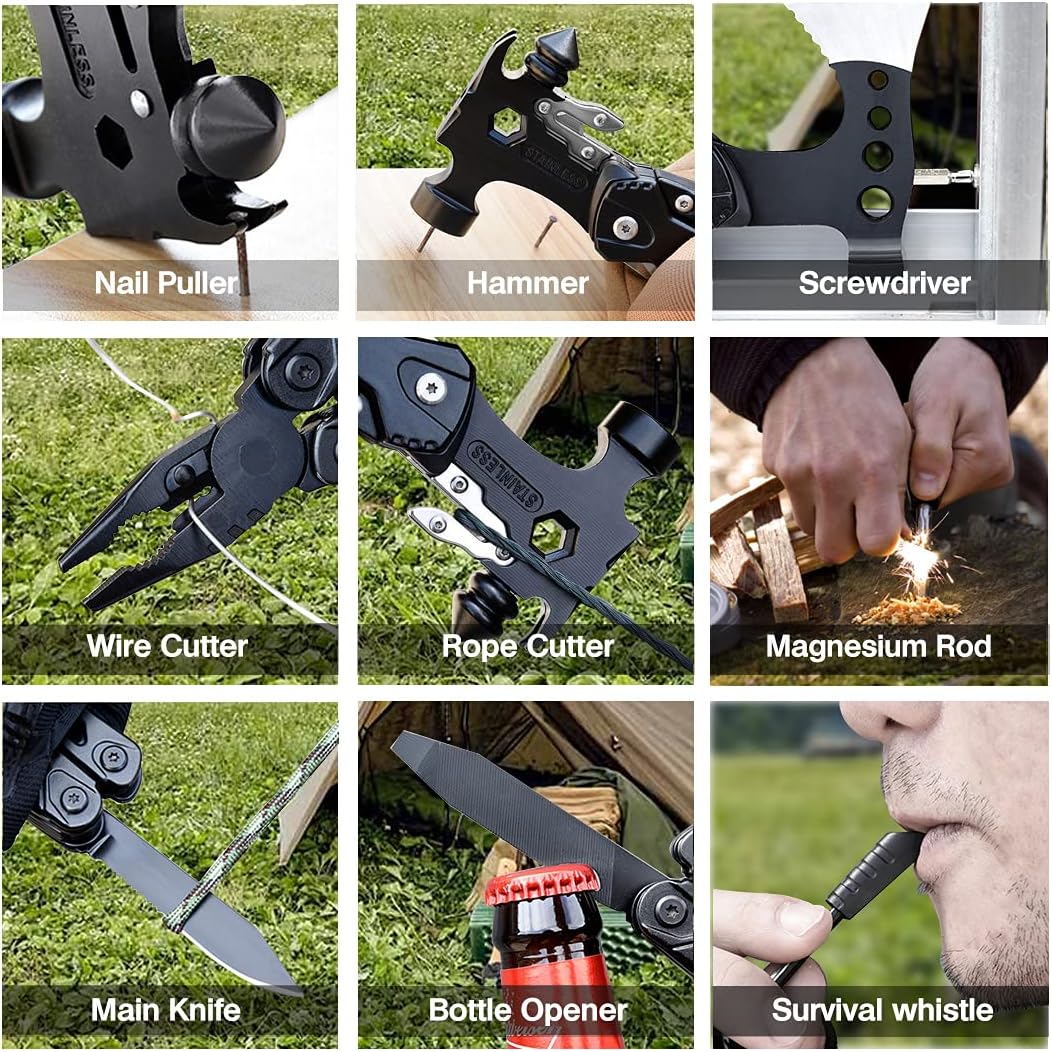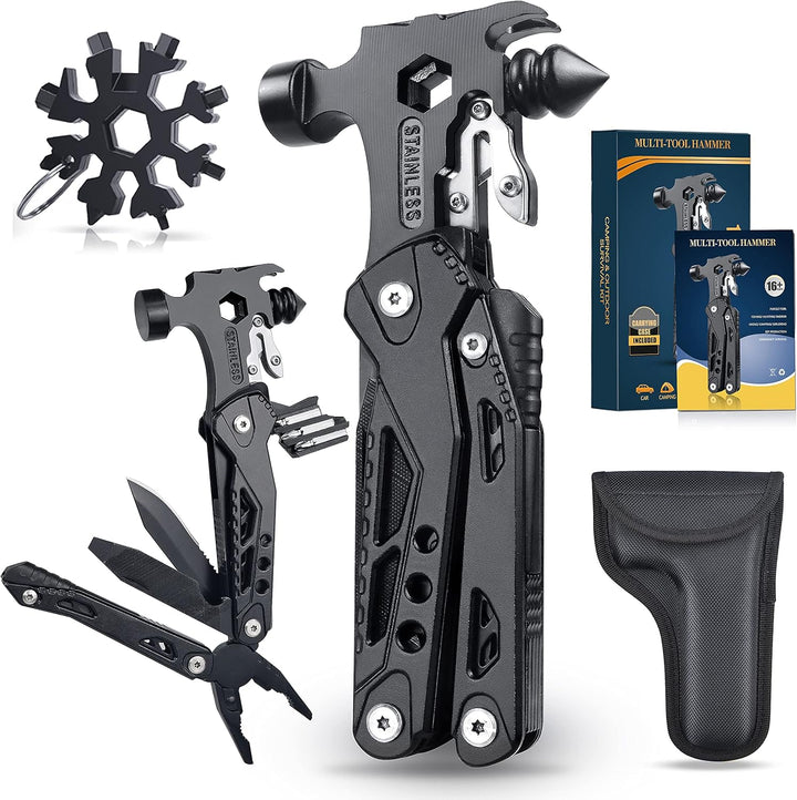 - 【Hammer + Schneeflocken-Set】Dieses Multitfunctional-Set enthält unglaubliche 37 Tools. Kann als Klauenhammer, Nagelzieher, Seilschneider, Kombizange, Schraubendreher, Drahtschneider, scharfes Messer, Säge, Feile, Flaschenöffner, Magnesiumstange