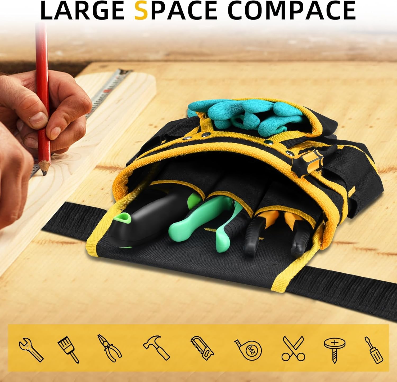 - [Langlebiges Material]. Unsere Werkzeuggürteltasche besteht aus hochwertigem, wasserdichtem und verschleissfestem Oxford-Gewebe mit Doppelnähten und Stahlnieten an Belastungspunkten für eine längere Lebensdauer.