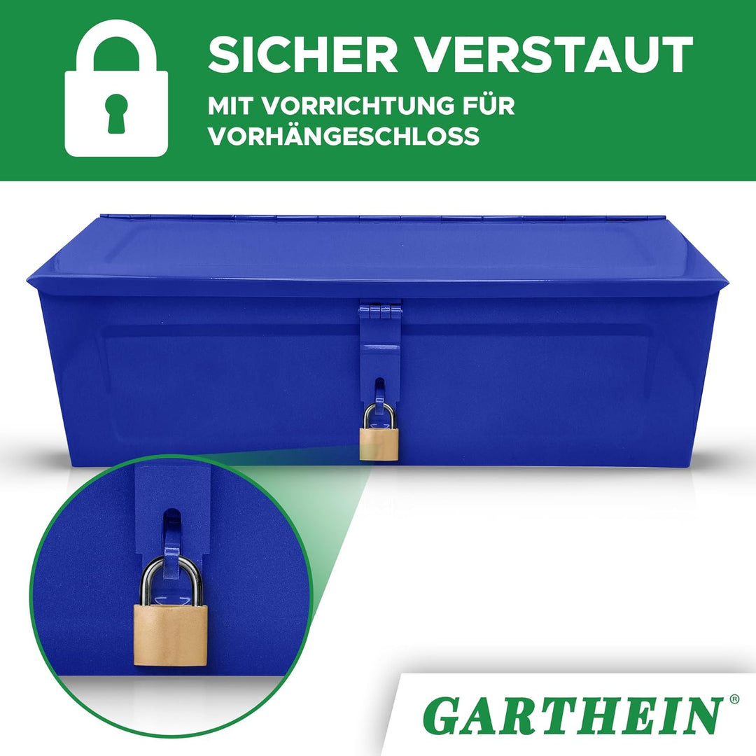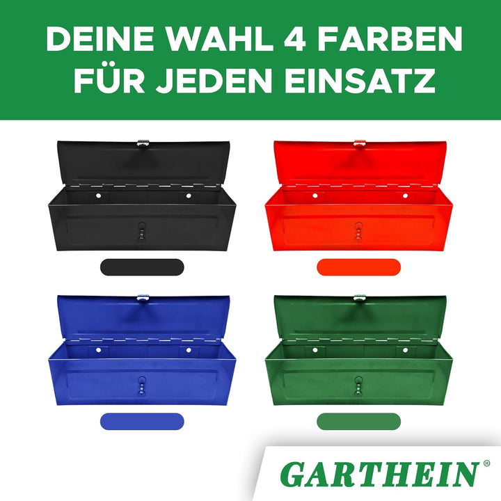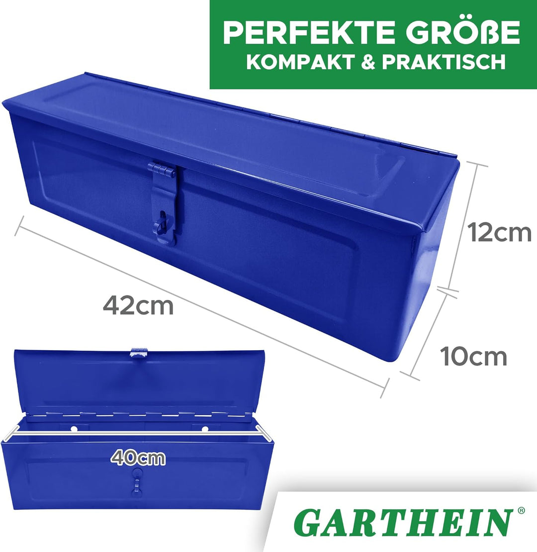 - Extrem langlebig & widerstandsfähig: Die GARTHEIN Werkzeugkiste in Blau überzeugt durch ihre robuste Verarbeitung aus hochwertigem Metall. Perfekt für den professionellen Einsatz in Werkstatt, Auto oder Keller. Widerstandsfähig gegen Kratzer, Stösse