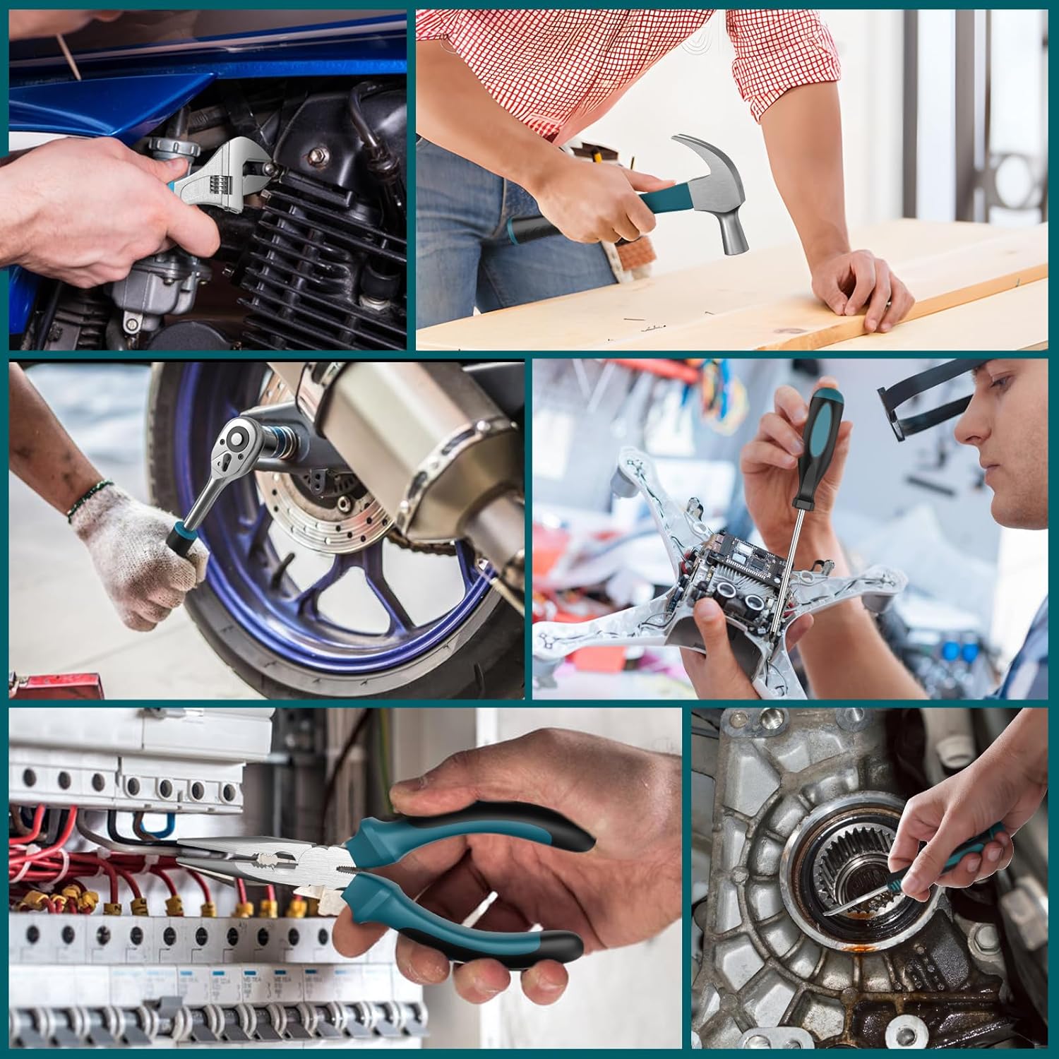 - Umfangreiche Werkzeuge: Dieser Werkzeugkoffer für Haushalt und Kfz-Reparatur enthält die wichtigsten, praktischen Werkzeuge. Der Werkzeugkasten enthält einen Hammer, einen verstellbaren Schraubenschlüssel, eine Spitzzange, ein Massband, einen