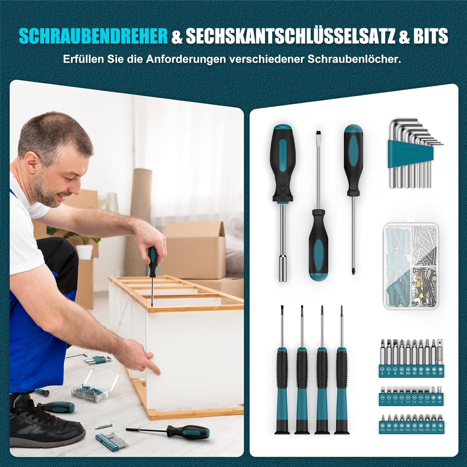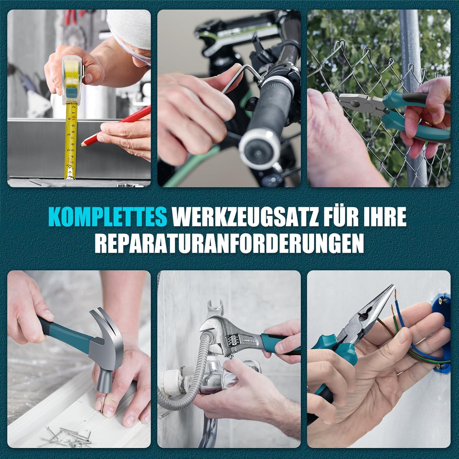 - Werkzeugkasten Gefüllt Ein Komplettes Kit: Der komplette Basis-Werkzeugkasten enthält nützliche und notwendige Werkzeuge für den täglichen Gebrauch, einschliesslich Schraubenzieher, Bohrer, Hammer und andere grundlegende Handwerkzeuge. Dieser