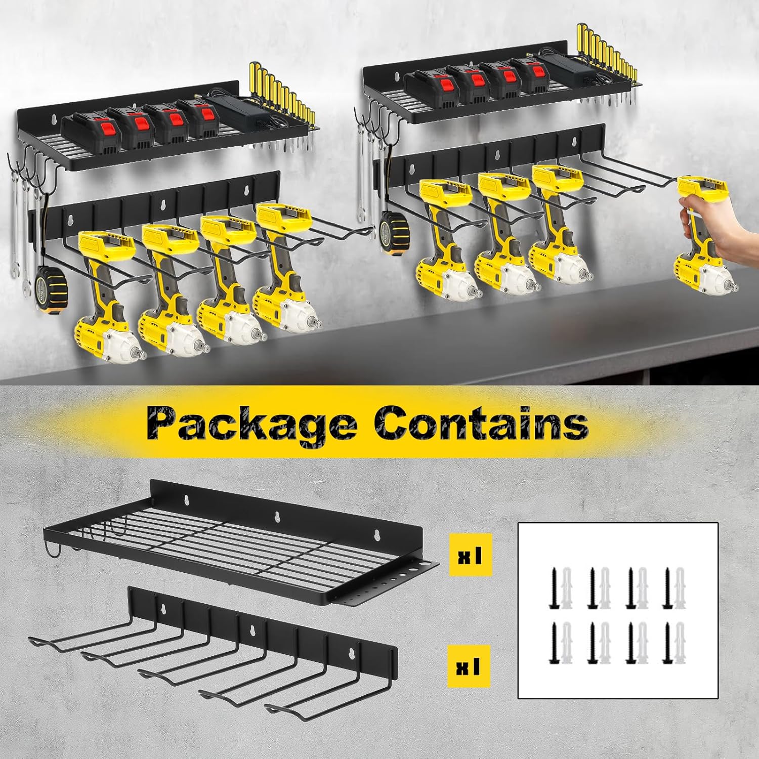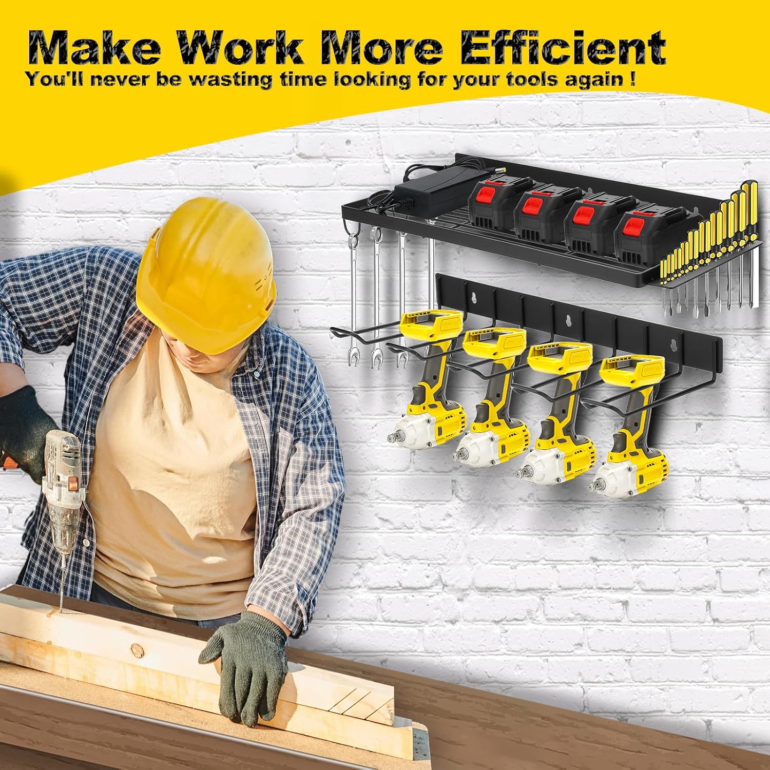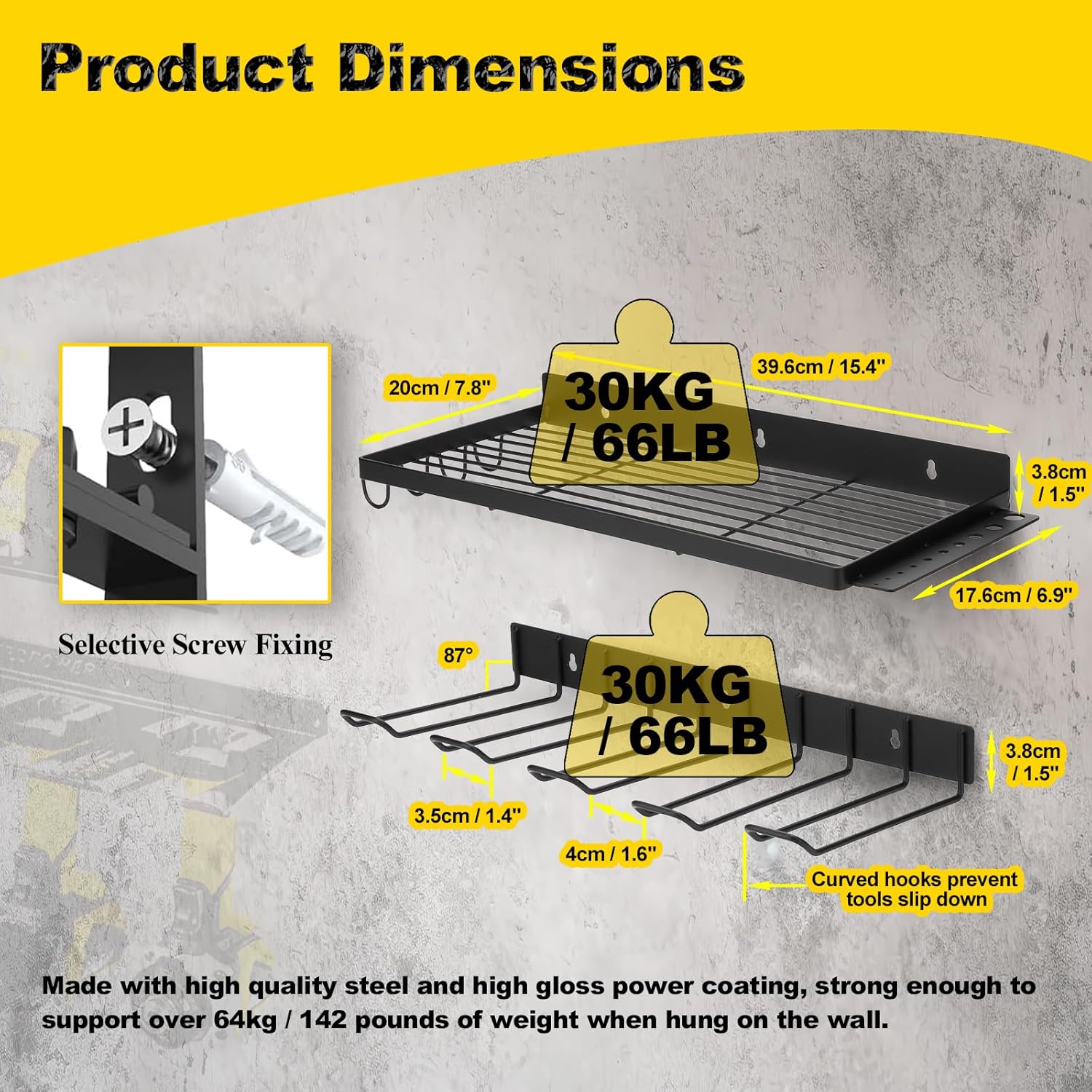 - 🔨Grosser Stauraum: Unser wand organizer für werkzeug ist perfekt, um alle Arten von Garagenkram zu organisieren. Mit 1 Regal auf der Oberseite, Die oberen Regale bieten Platz für Bohrer, Ladegeräte, Oberfräsen, Batterien, Massbänder,