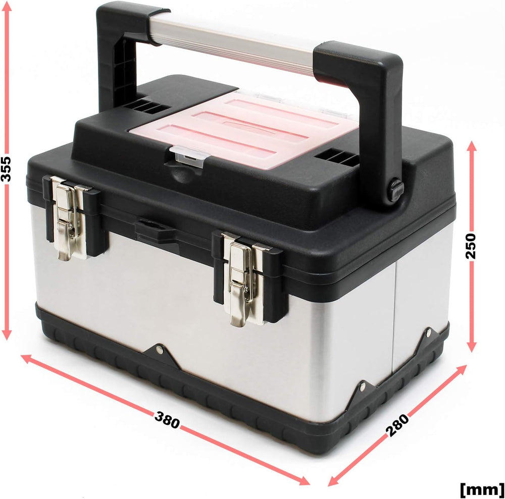 - [Robuste Materialien] – Die Kombination aus Edelstahl und Kunststoff verleiht dem Werkzeugkasten nicht nur ein elegantes Ansehen, sondern gewährleistet auch eine lang anhaltende Nutzung