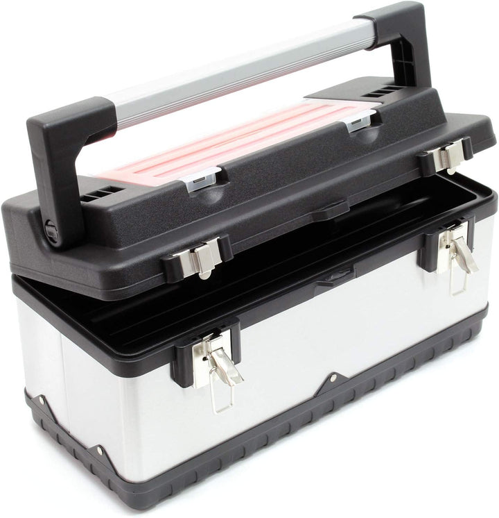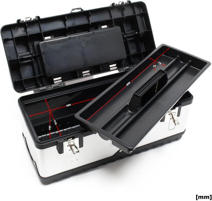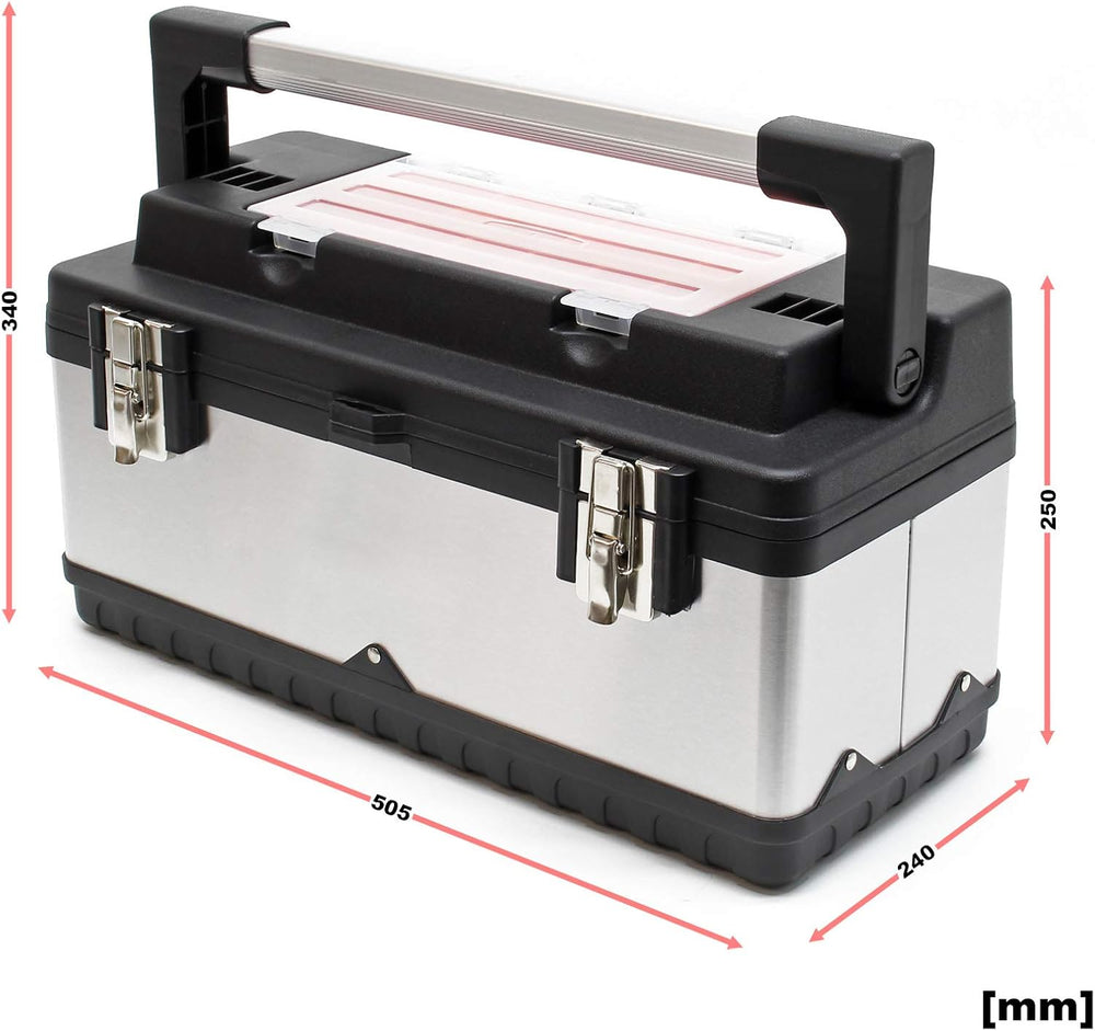 - [Robuste Materialien] – Die Kombination aus Edelstahl und Kunststoff verleiht dem Werkzeugkasten nicht nur ein elegantes Ansehen, sondern gewährleistet auch eine lang anhaltende Nutzung