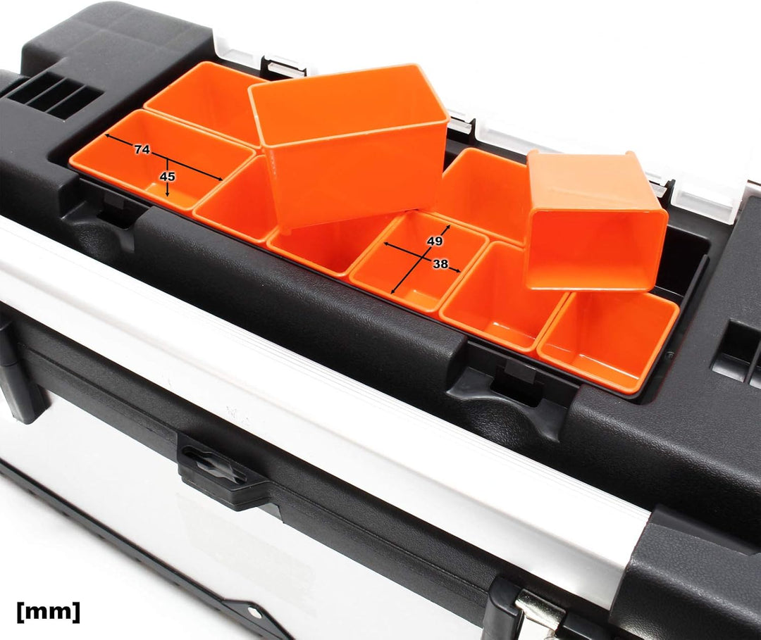 - [Optimale Organisation] – Der herausnehmbare Werkzeugträger im Inneren der Werkzeugkiste ermöglicht eine gezielte Aufbewahrung verschiedener Utensilien, von Schraubenziehern bis zu Stecknüssen