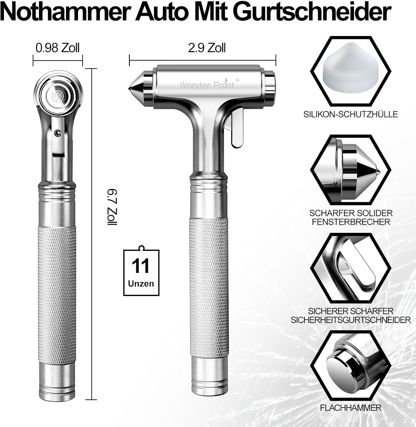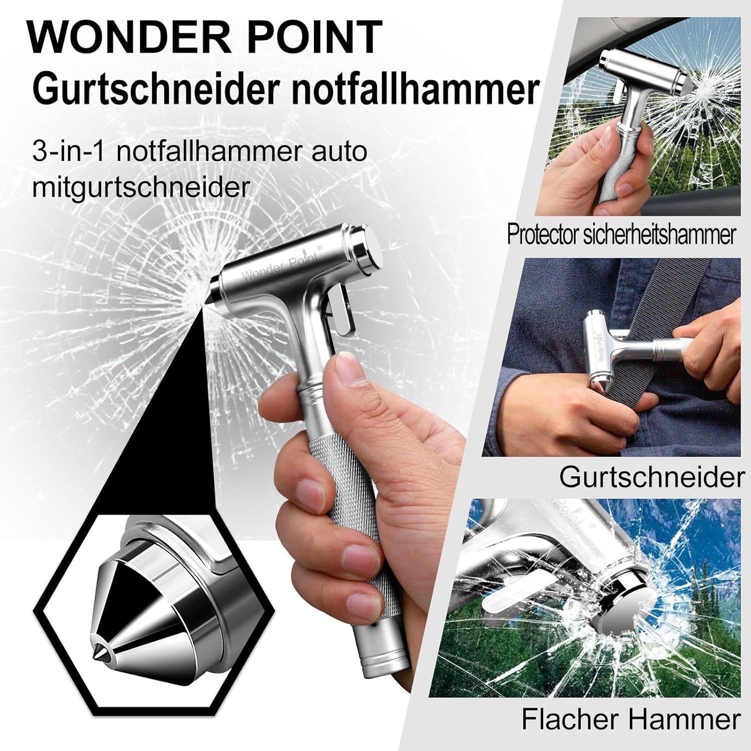 - ROBUSTES 3-IN-1-SICHERHEITSWERKZEUG: Der WONDER POINT-Sicherheitshammer besteht aus einer haltbaren Legierung und ist ein unverzichtbares Fluchtwerkzeug für Notfälle. Sein scharfer Sicherheitsgurtschneider aus Edelstahl ermöglicht eine schnelle