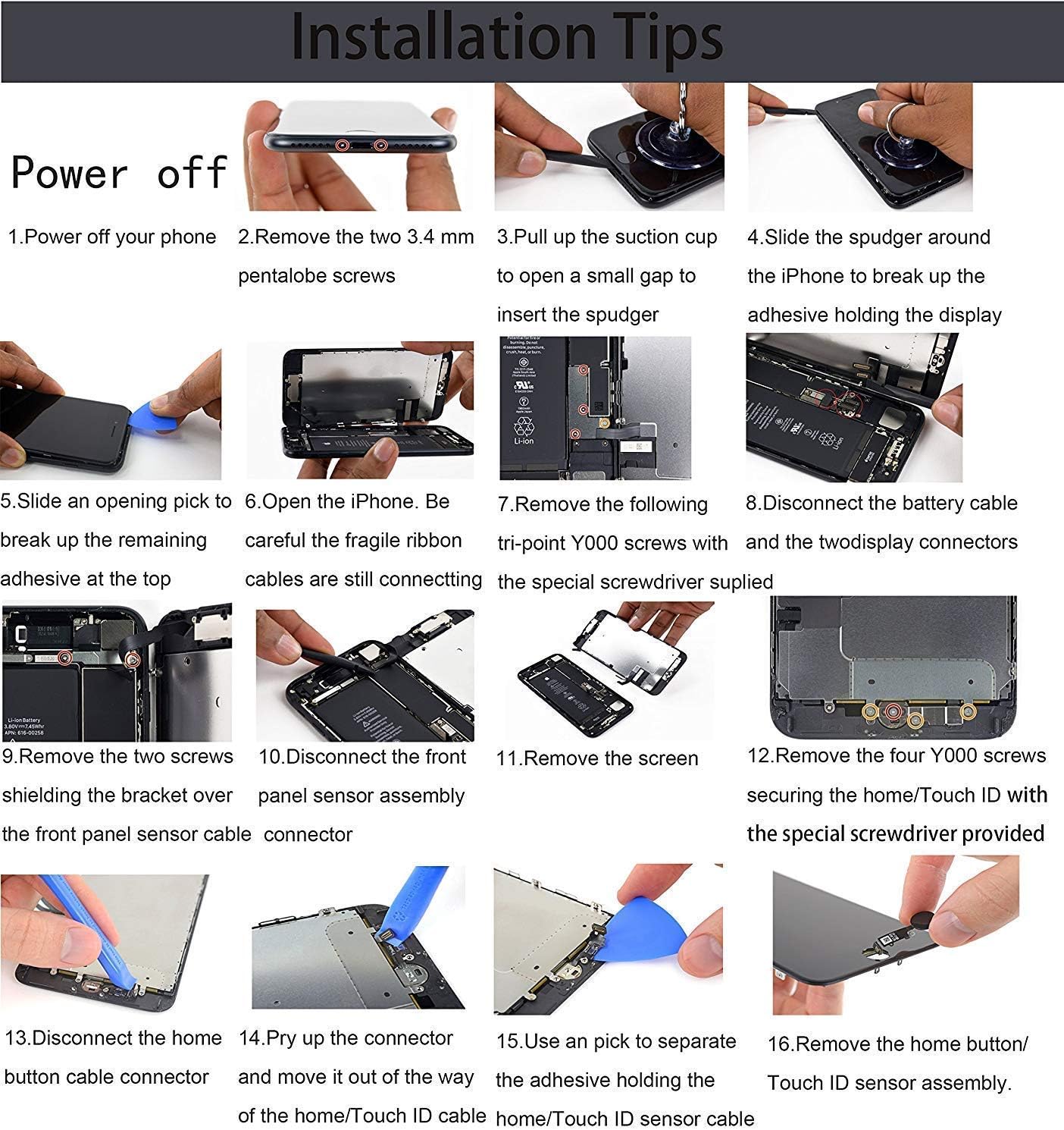- Das Display ist nur kompatibel mit dem iPhone 8 und nicht mit den anderen Modellen kompatibel. Beachten Sie bitte das Video, um das Display des Telefons zu installieren.