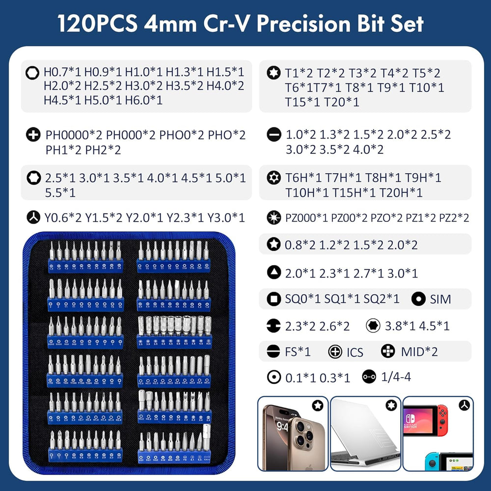 - Multifunktionales Reparaturset - Dieser Präzisionsschraubendreher-Satz enthält 120 Bits und ist mit allen Bits ausgestattet, die Sie für Reparaturen oder Heimwerkerprojekte benötigen. Darüber hinaus sind 20 nützliche Zubehörteile enthalten, wie