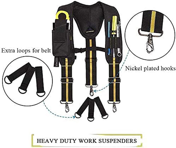- 【Y-förmiges Design】Der Y-förmige Werkzeuggürtel nimmt das klassische Y-förmige Design an, reduziert das Gewicht der Taille und der Hüften und ist den ganzen Tag bequem und bietet ultimativen Komfort und Leistung vor Ort.