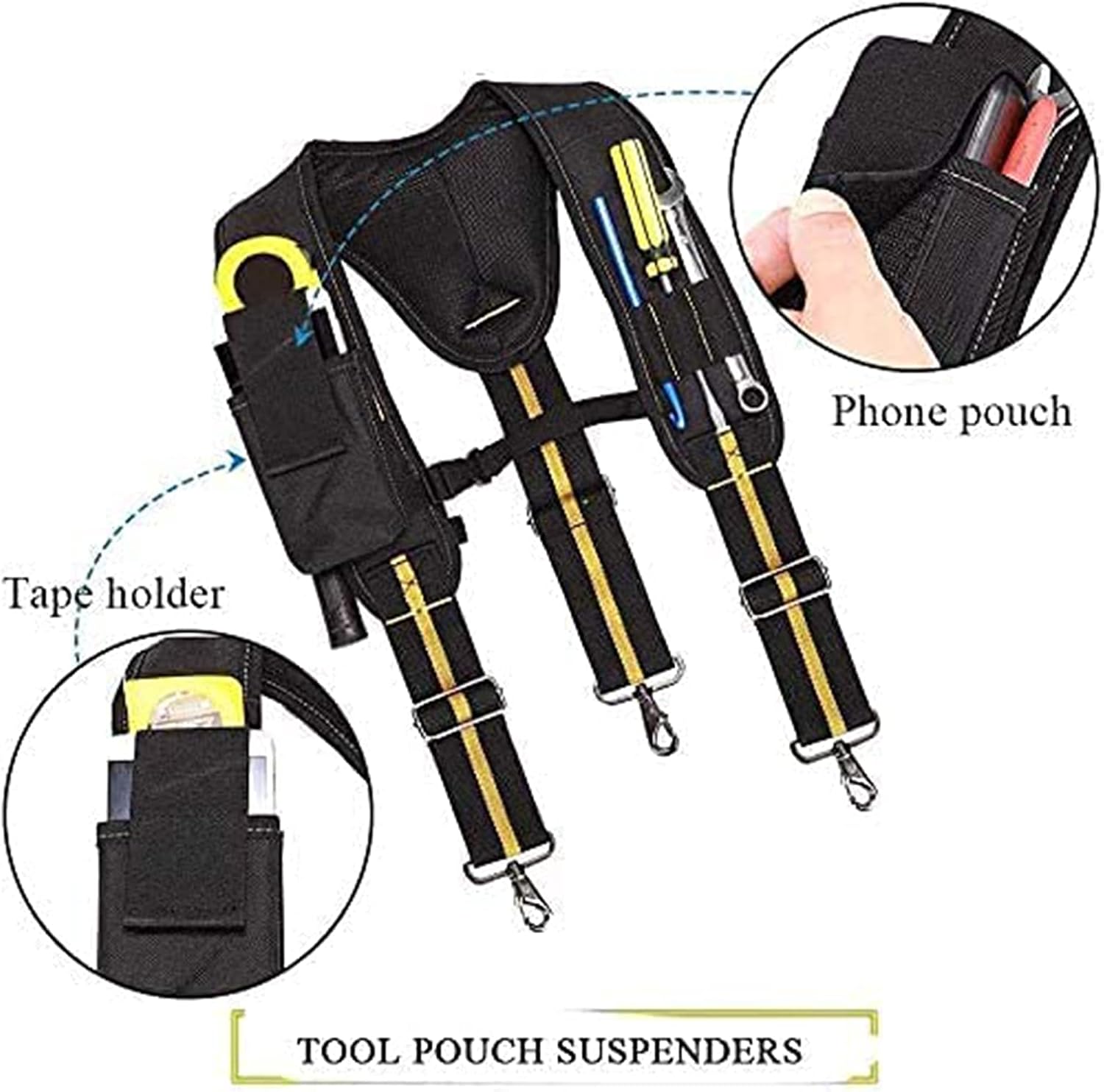 - 【Schaumstoffschulter】Schaumstoffpolster am Y-förmigen Werkzeuggürtel, die gepolsterten Schaumstoff-Schultergurte verteilen den Druck gleichmässig auf Ihre Schultern und entlasten wunde Stellen vollständig. Ist Ihre beste Wahl.