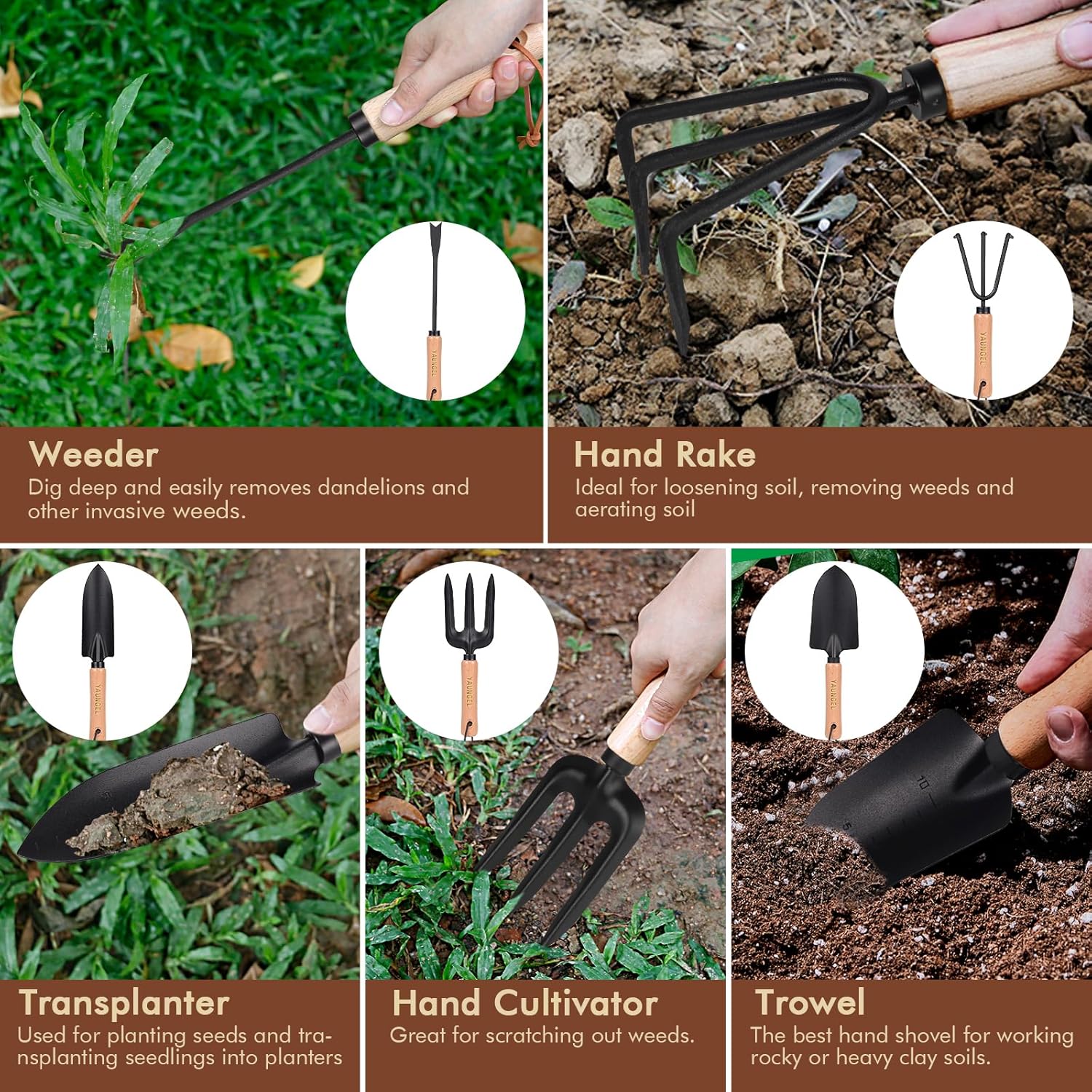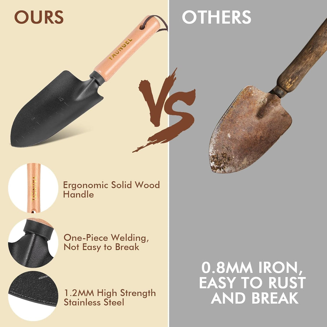- Komfortabler Griff - Der gut gestaltete Griff aus Eschenholz liegt gut in der Hand und reduziert Handschmerzen und Ermüdung beim Graben, Jäten und Pflanzen. Die Unterseite des Griffs ist mit einem Kuhfellband versehen, um die Aufbewahrung zu