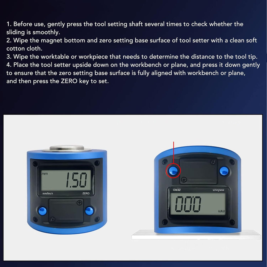 - [Hochpräzise Einstellung]: Dieser Z-Achsen-Werkzeugeinsteller gewährleistet präzise und genaue Korrekturen für CNC-Werkzeugmaschinen mit einer Einstellhöhe von 50 ± 0,01 mm, geeignet für eine Reihe von metallischen und nichtmetallischen