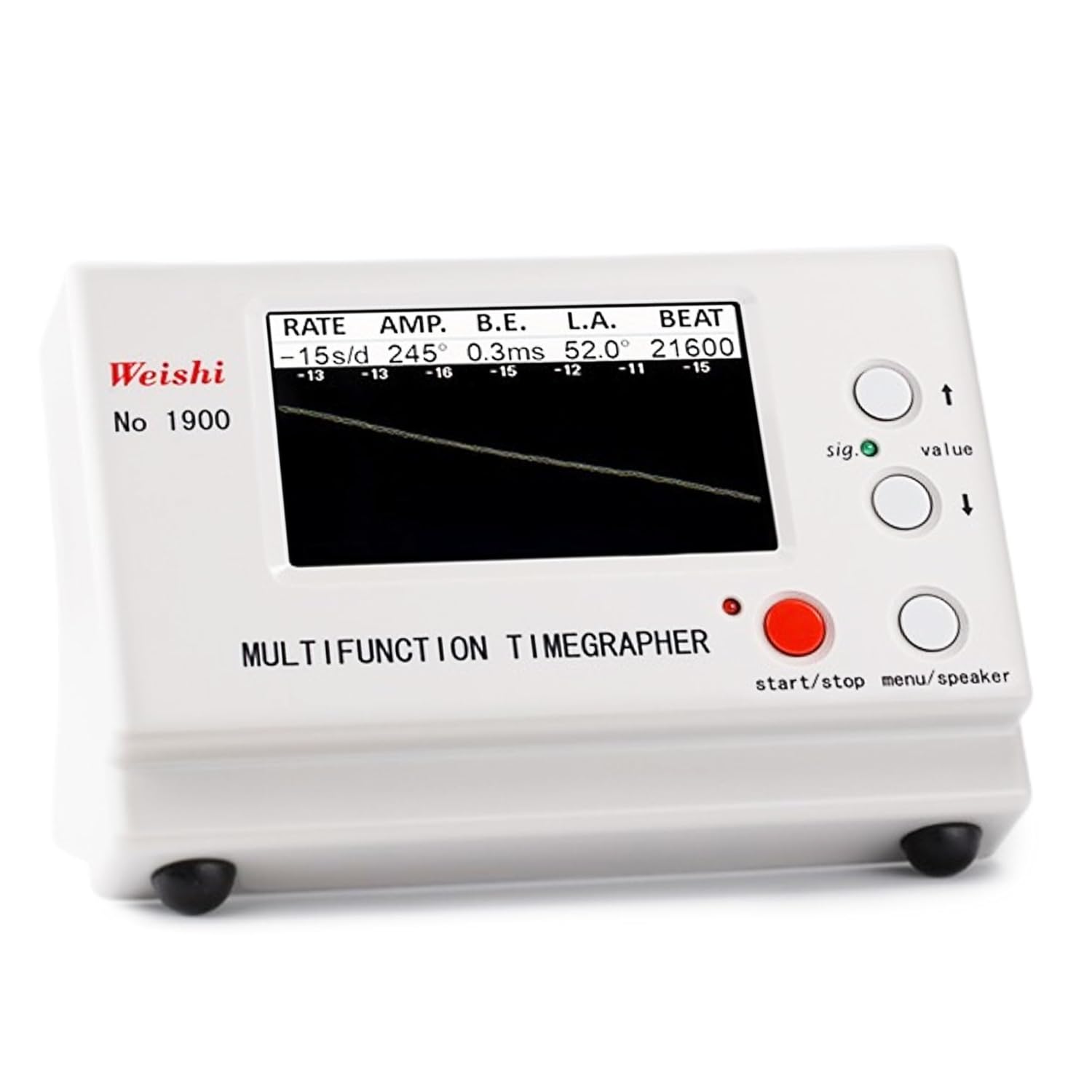 - Nr. 1900 ist ein präzises mechanisches Prüfinstrument für Uhrwerke. Es wird von Uhrherstellern und Uhrmachern für vielfältige Prüfungen verwendet.