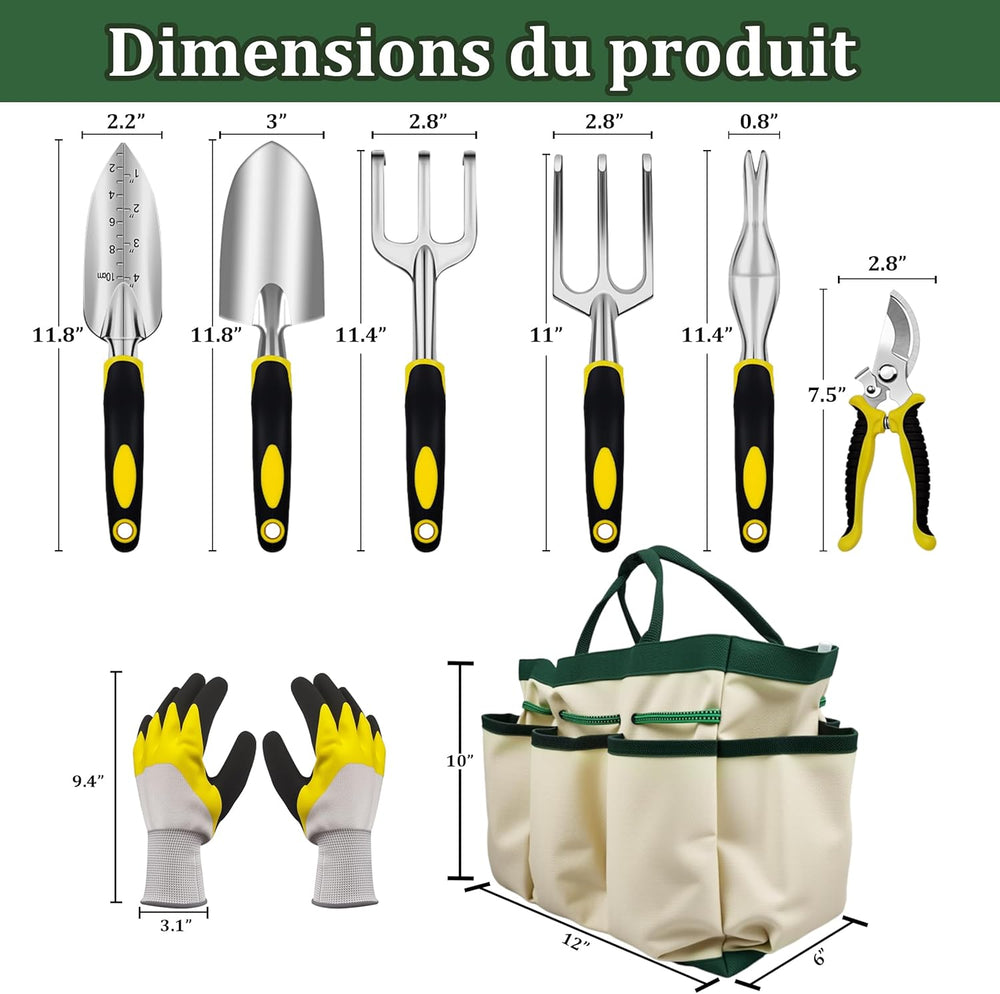 QRD Gartengeräte Set 8 in 1 Gartenwerkzeug mit Aufbewahrungstasche Gartenschaufel mit Gummigriff Gar