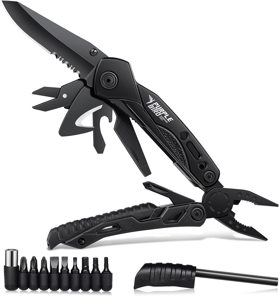 PURPLEBIRD Multitool Werkzeug 16 in 1 Survival Faltbares Gadgets mit Taschenmesser und 9 Bits Multif