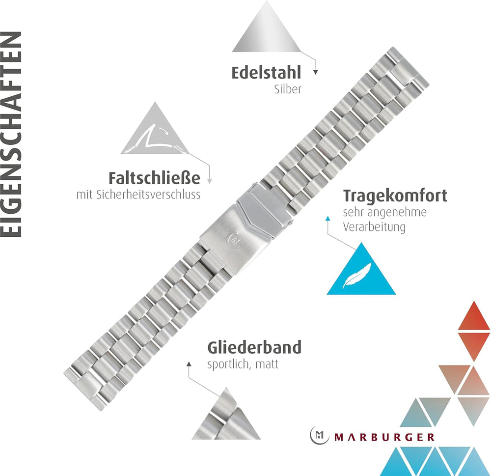 MARBURGER Uhrenarmband 22mm Edelstahl Silber - Werkzeug Montage Set 89508180020