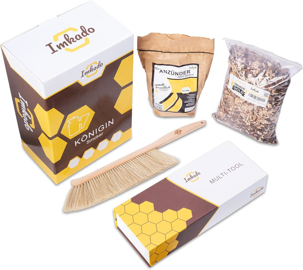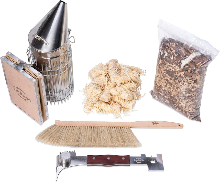 Imkado Imker Set XL - Premium Edelstahl-Smoker, Bienenbesen, Multifunktionswerkzeug/Stockmeissel, Ra