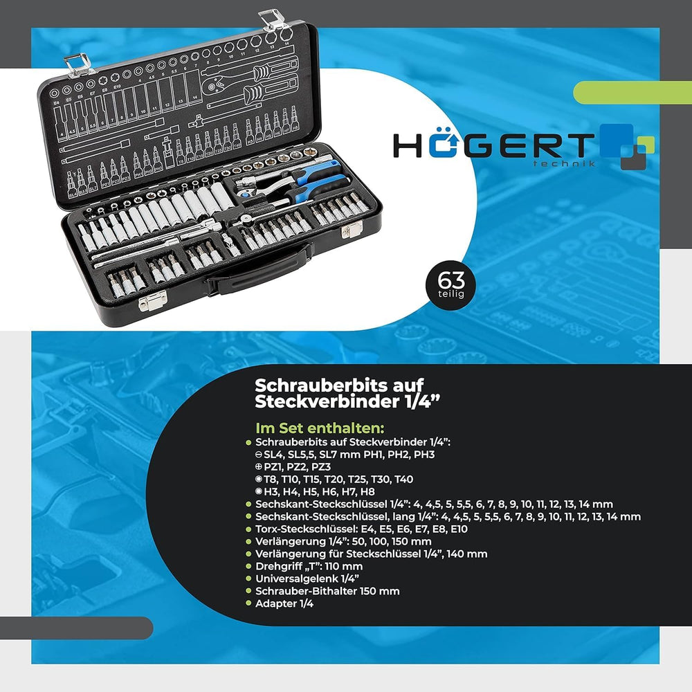 Högert Technik - Werkzeugset I Steckschlüssel, Bits und Ausstattung 1/4” I Legiertem Chrom-Vanadium-