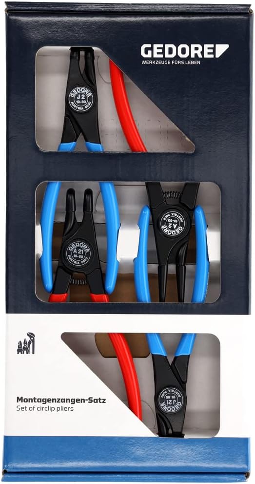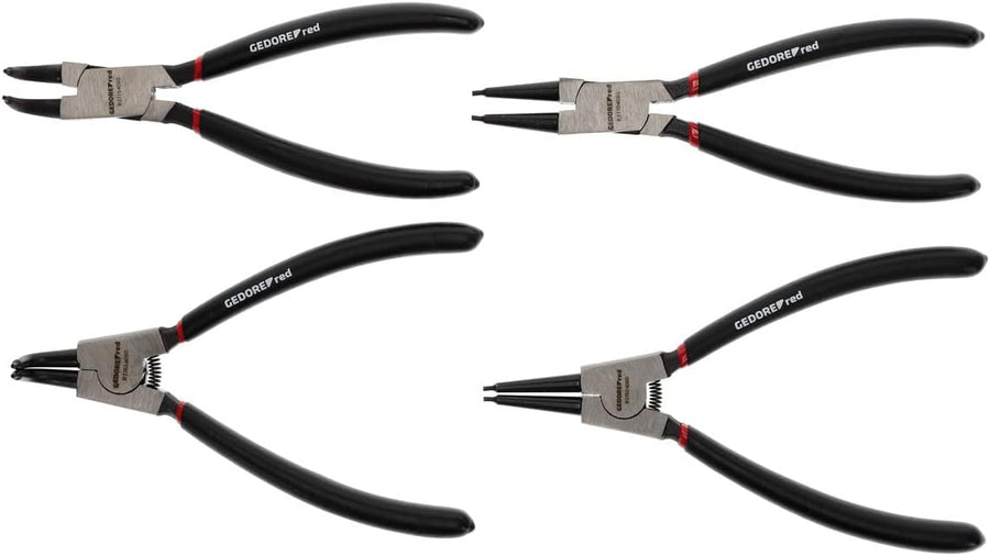 GEDORE red Montagezangen-Satz, 4tlg, Werkzeug-Set für Innen- und Aussensicherungsringe, gerade und g