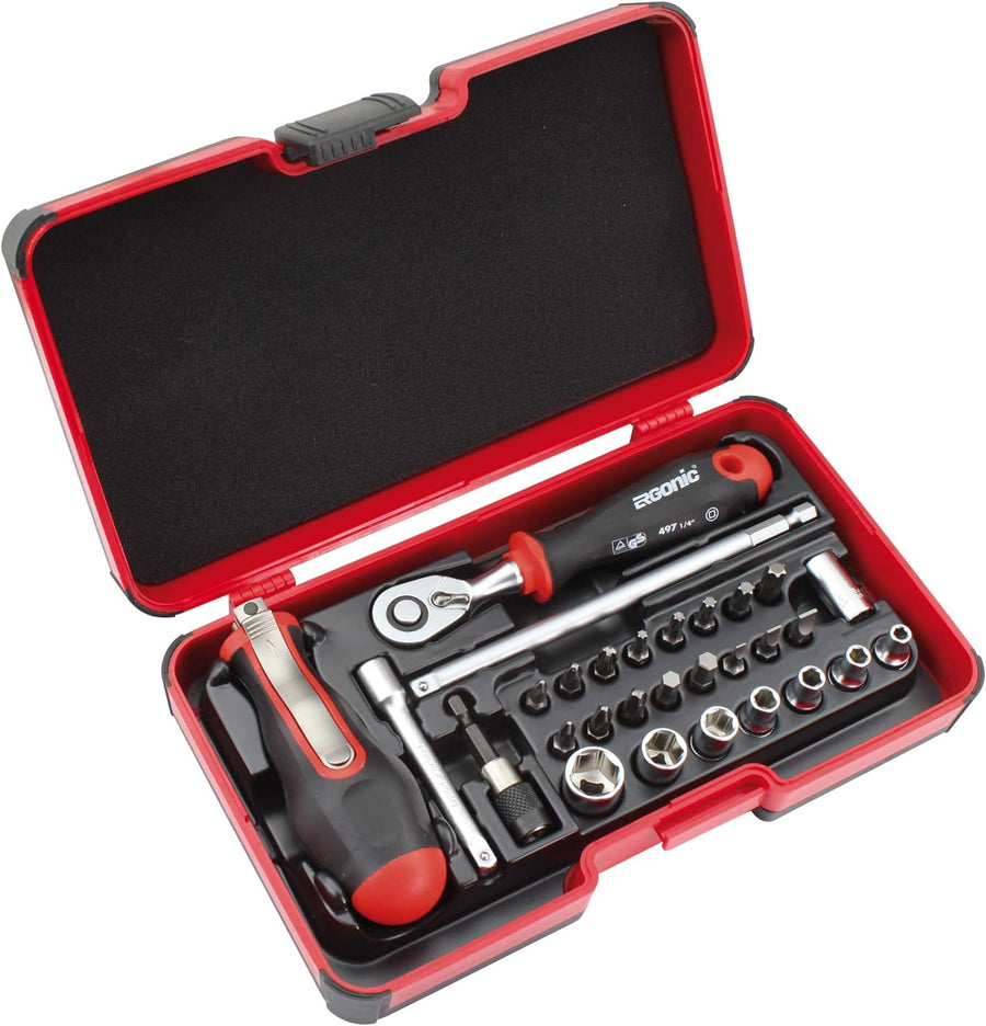 Felo Werkzeugsatz XS 18 1/4' mit Miniratsche, Bits, Steckschlüsseleinsätzen und Zubehör, 18-tlg