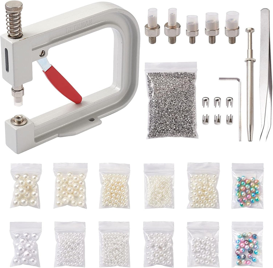 Cheriswelry Perlenfassung, Nieten, Werkzeug-Set, 590 Stück, 5 Grössen, Acryl, runde Perlen, Pinzette