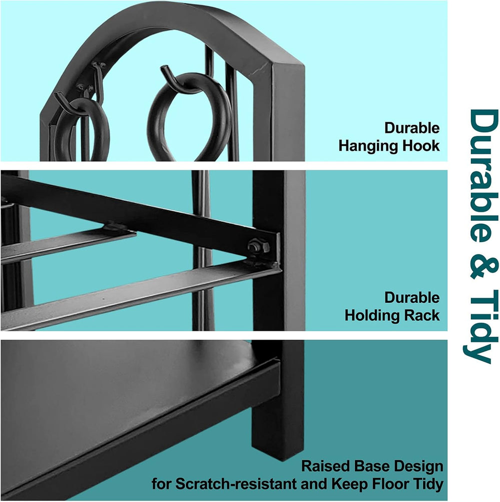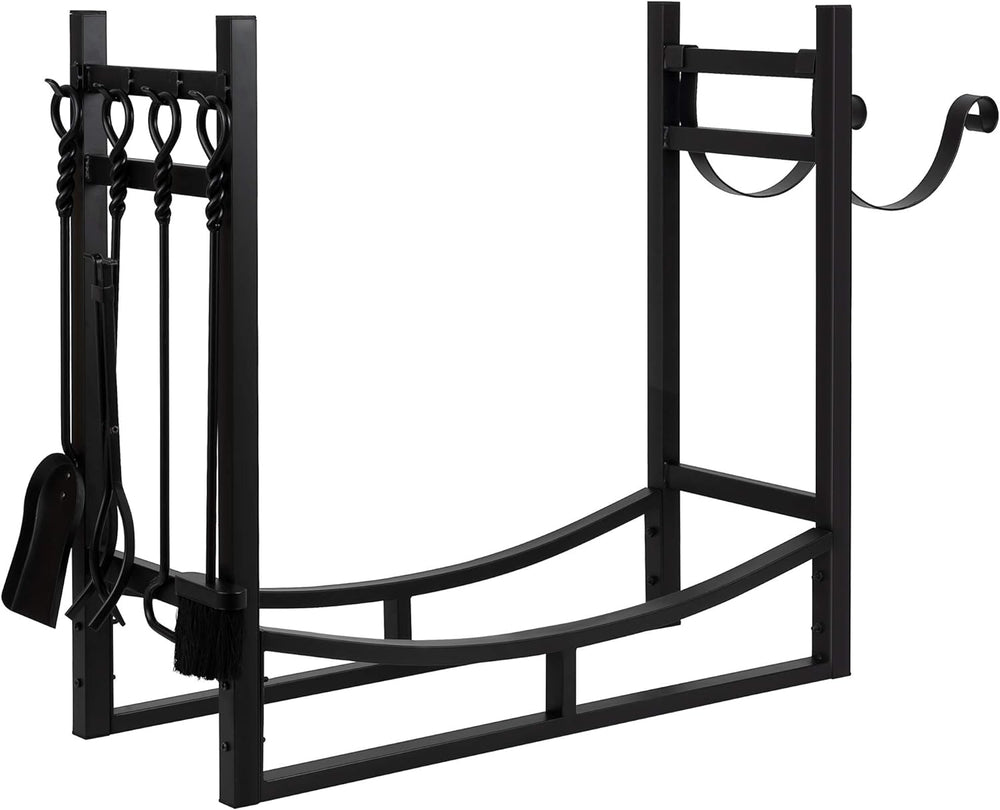 Amagabeli Kaminbesteck Kaminholzständer mit 4 Werkzeugen für Innen Aussen 74 x 40 x 30cm Kaminholzha