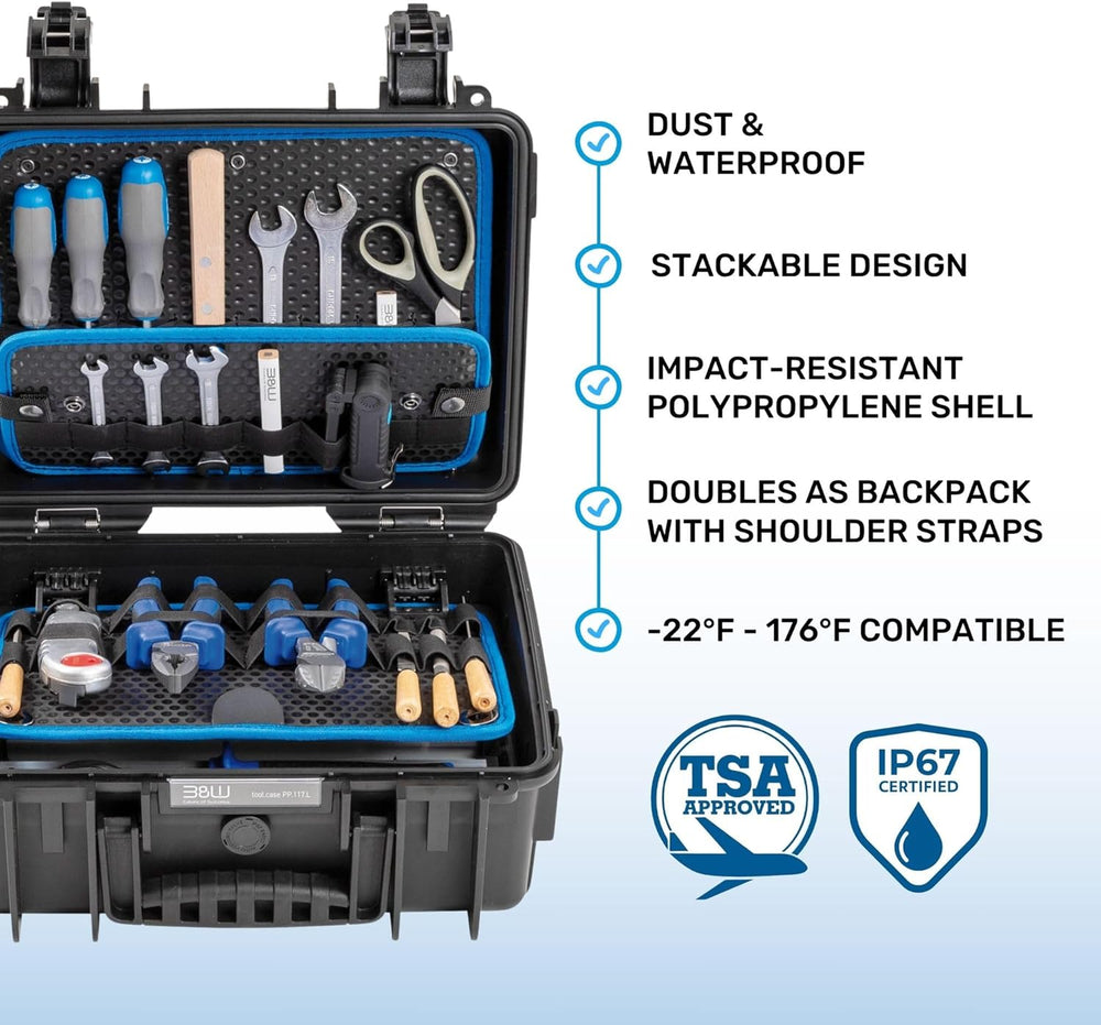 B&W Werkzeugkoffer BASE mit Werkzeugeinsteckfächern (Koffer aus ABS, Volumen 28,1l, 46,3 x 35,5 x 17