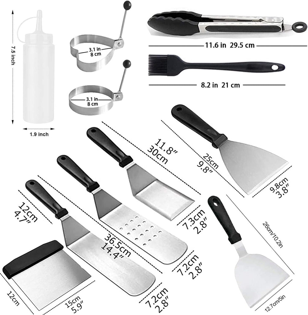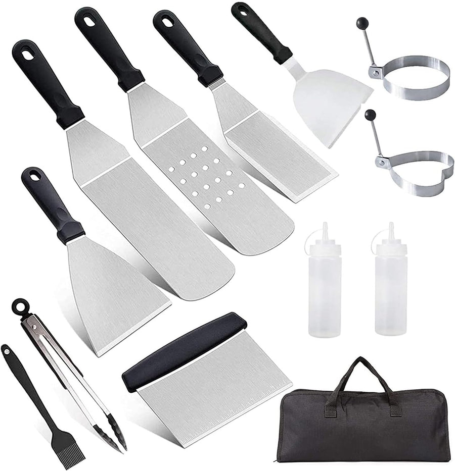 AMZMUKAUP 12Pcs Grillspachtel Set, Grillwender BBQ Werkzeugset Edelstahl mit Tragetasche, Perfektes