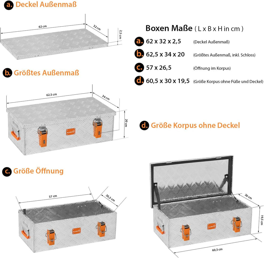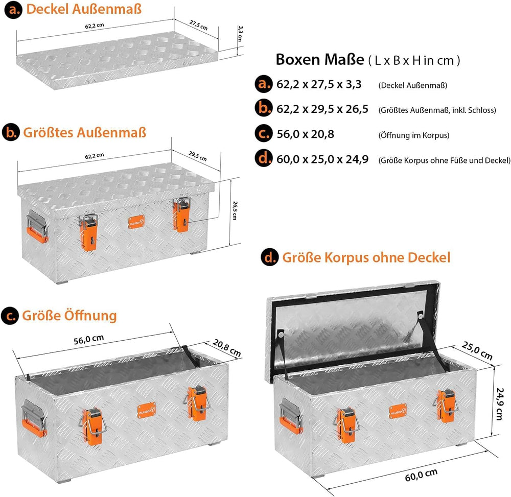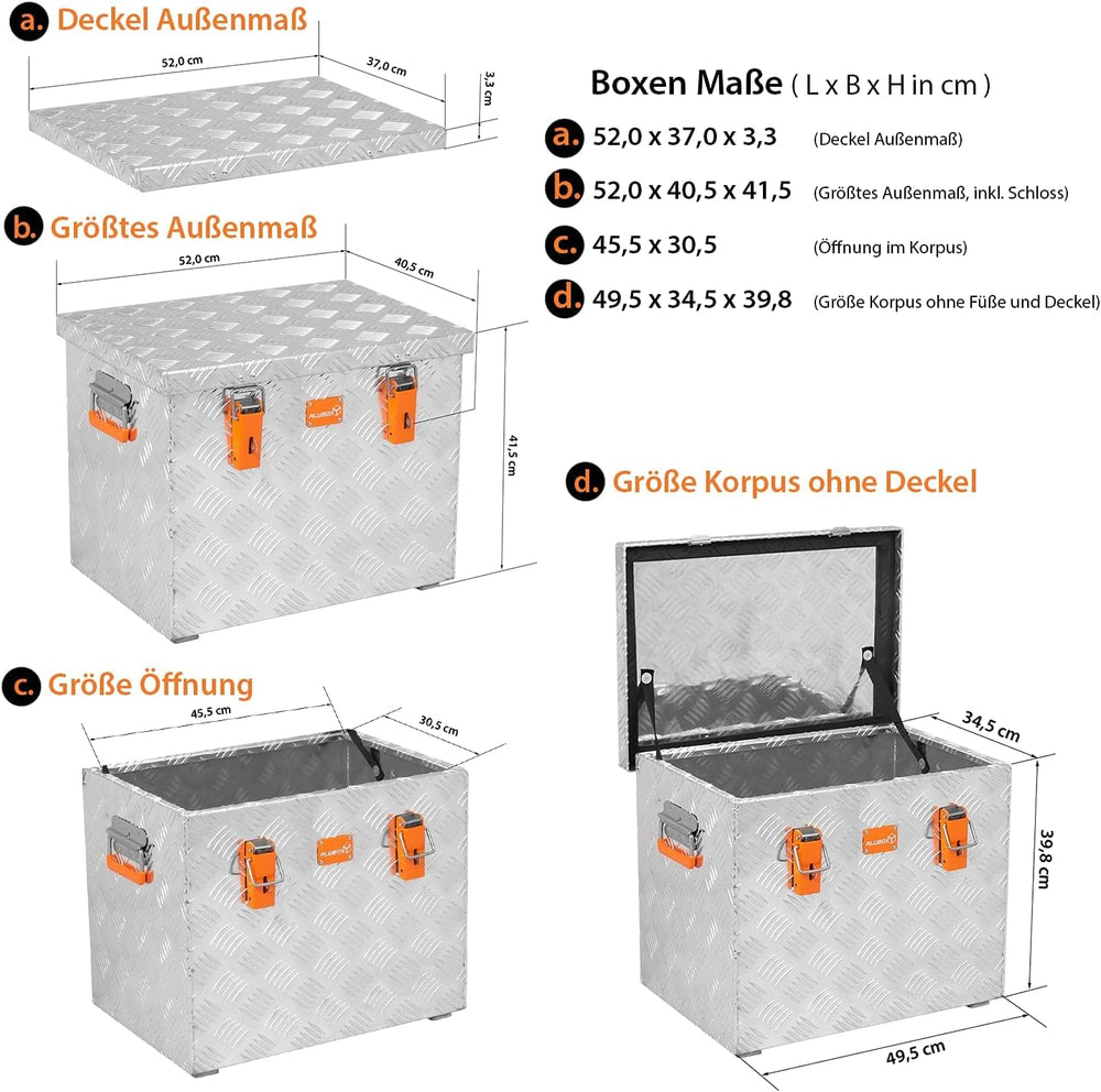 alubox R37 Aluminium Riffelblech Werkzeug Transportkiste 37 Liter 037 Liter, 037 Liter