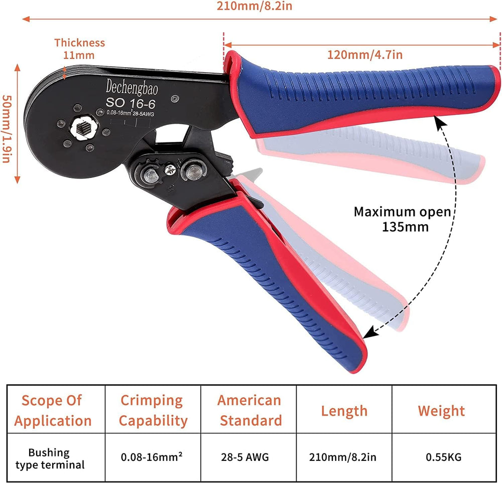 Aderendhülsen-Crimpzange, 0,08-16mm²/AWG 28-5 Crimpwerkzeuge, Draht-Crimpzange, selbsteinrastende Ra