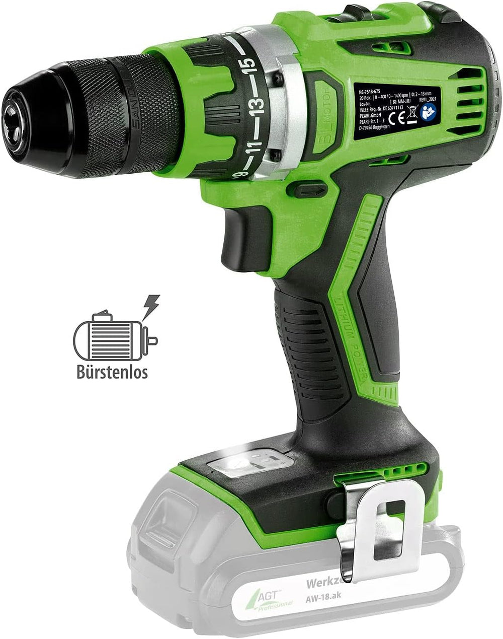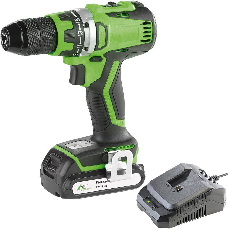 AGT Professional Akku Bohrmaschine: Akku-Bohrschrauber AW-18.bs mit bürstenlosem Motor, Ladegerät &