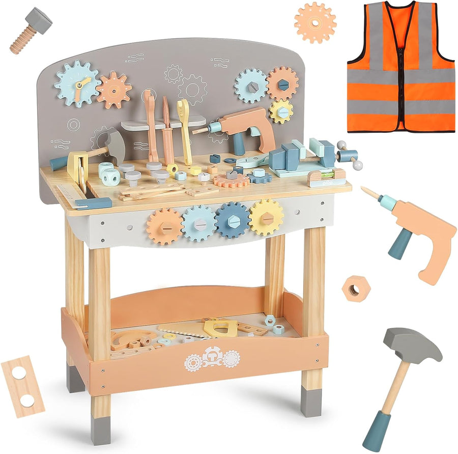 DINORUN Werkzeugbank Kinder Werkzeug Holzspielzeug ab 3 Jahre Werkzeug Kinder Kinder Junge Mädchen 3
