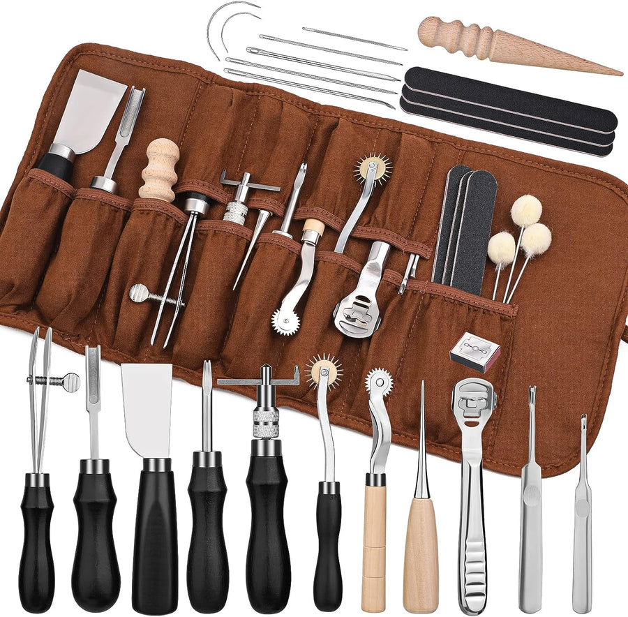 37 Stücke Leder -Arbeitswerkzeuge, Lederhandwerkzeuge mit Edge, Skiver, Nähwerkzeugen für Handnähten
