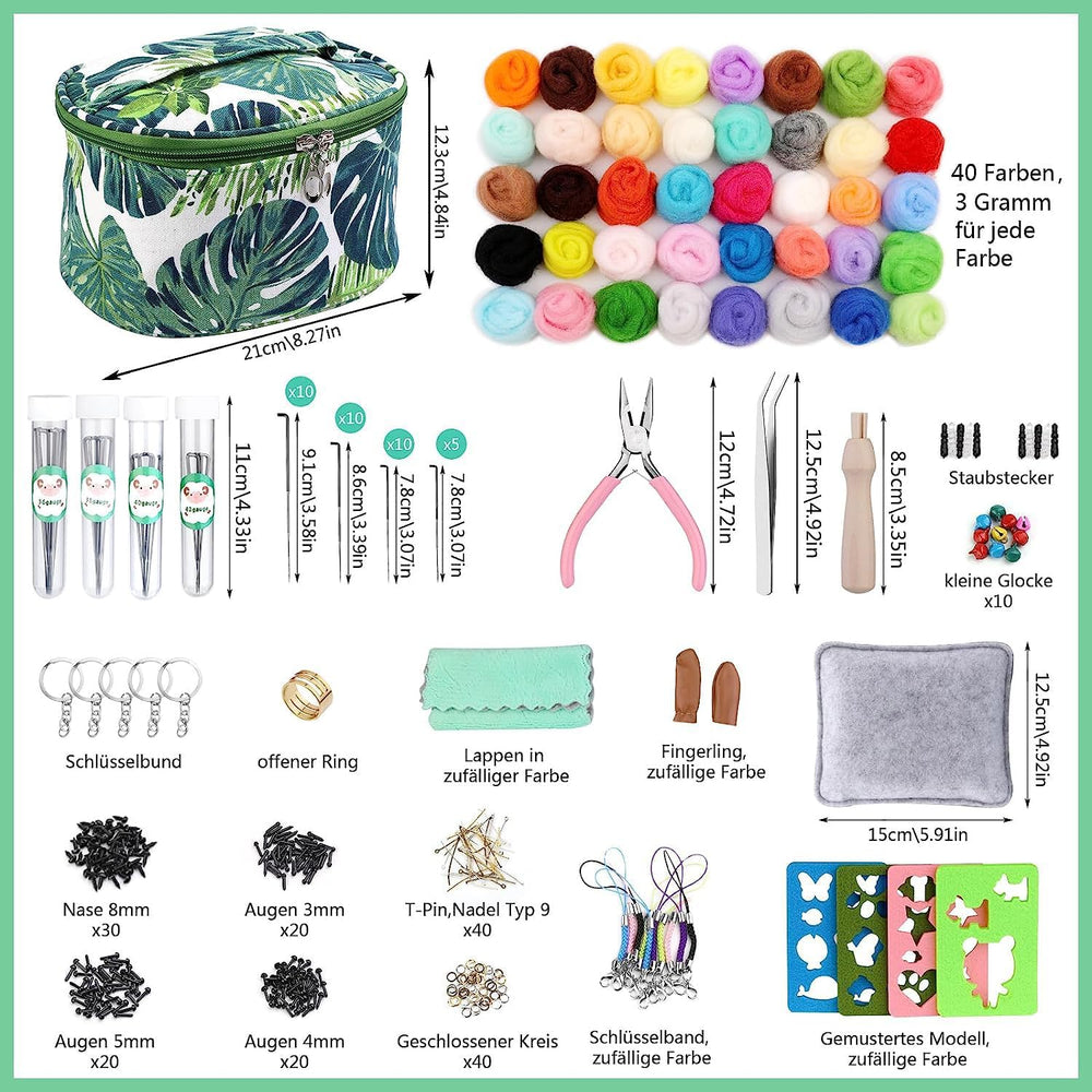 300 Stück Filzwolle Set, 40 Farben Filzwolle Basisset Grundlegende Filzwerkzeuge und Zubehör für Anf