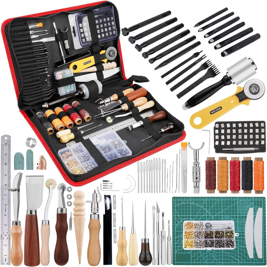 Kuppt Leder Werkzeug Set, Leder Nähset, Leder Bearbeitungs Werkzeug mit Leder Stanzwerkzeugen, Leder