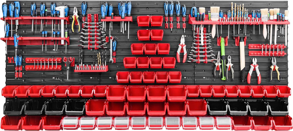 Lagersystem Werkstattregal | 172 x 78 cm | 66 stck. Box | Wandregal mit Werkzeughalterungen und Stap