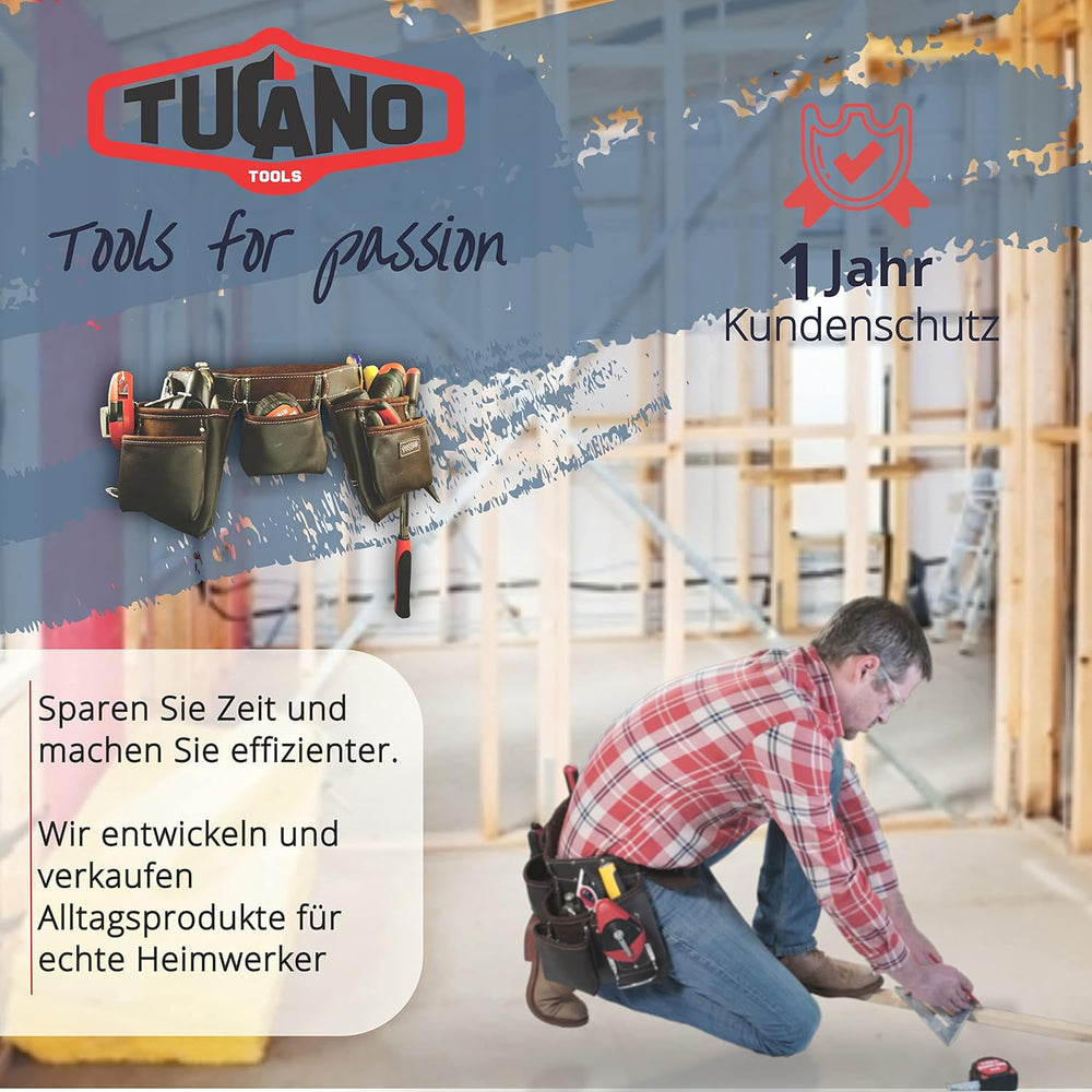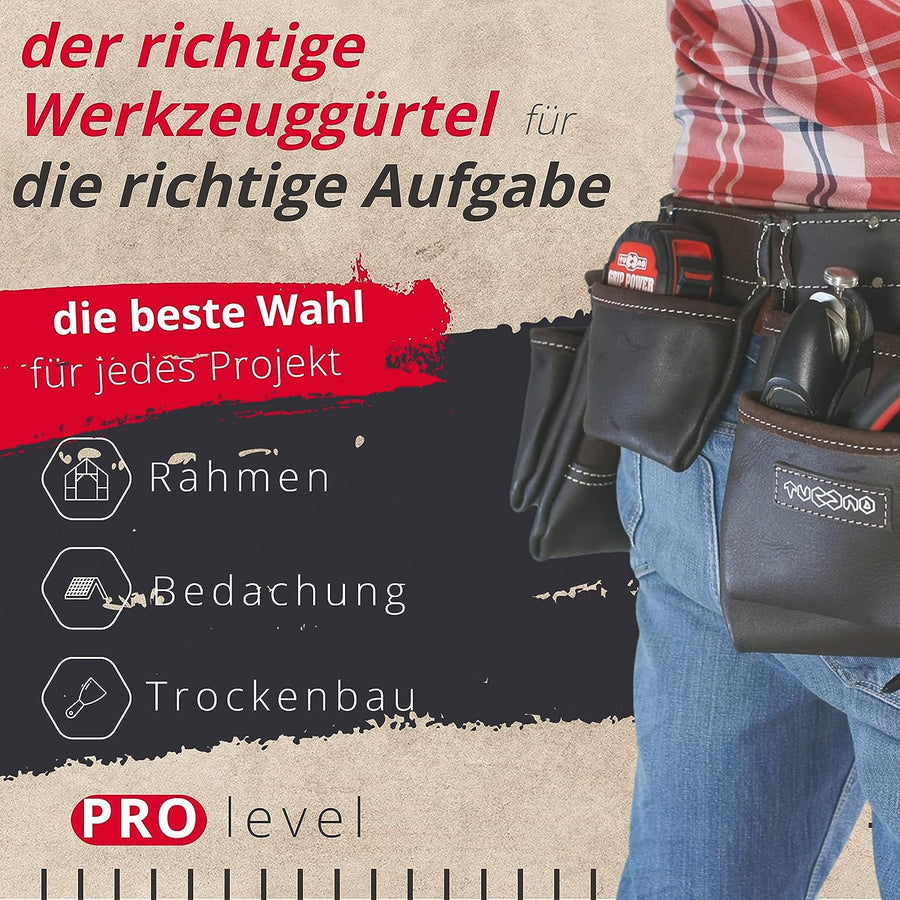 12 Taschen Schreiner Ölüberzogenes Leder Werkzeuggürtel | Handwerker Arbeits Gürtel Schürze für Männ