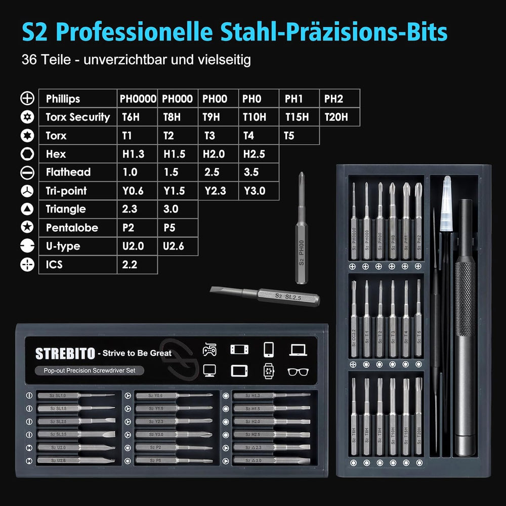 STREBITO Kleiner Schraubendreher-Satz 39 in 1 Präzisionsschraubendreher-Satz, Elektronik-Werkzeugsat