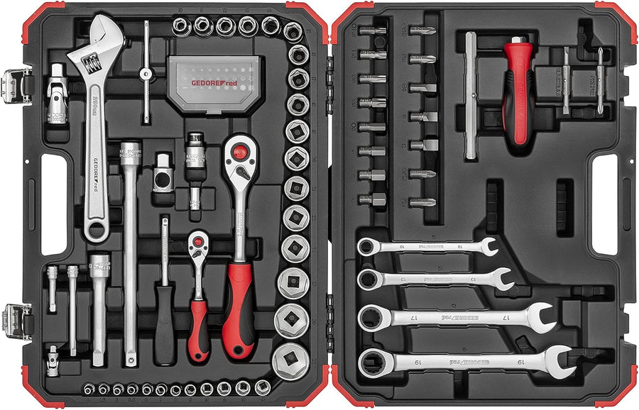 GEDORE red Steckschlüsselsatz, Set 97tlg, 1/2 1/4 Zoll Antrieb, Adapter Werkzeug, Knarre Nüsse Bitha