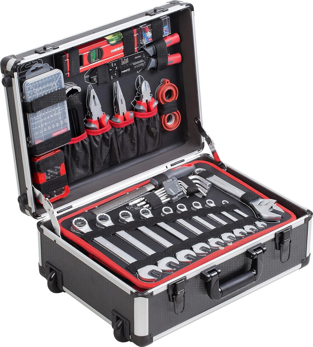 Meister Werkzeugtrolley 230-teilig - Werkzeug-Set - Mit Rollen - Teleskophandgriff/Profi Werkzeugkof
