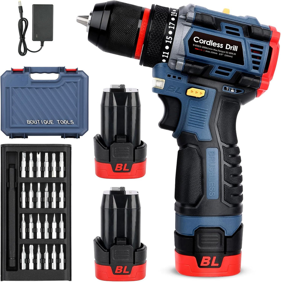 Akku Bohrschrauber mit Bürstenloser Motor - 16.8V Akku Bohrmaschine Bürstloser mit 2000mAh Akkus, 60