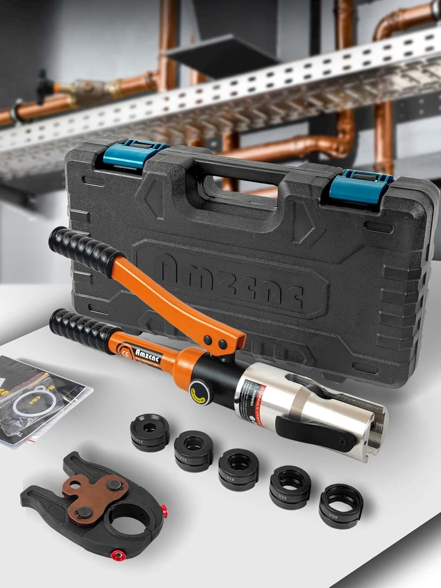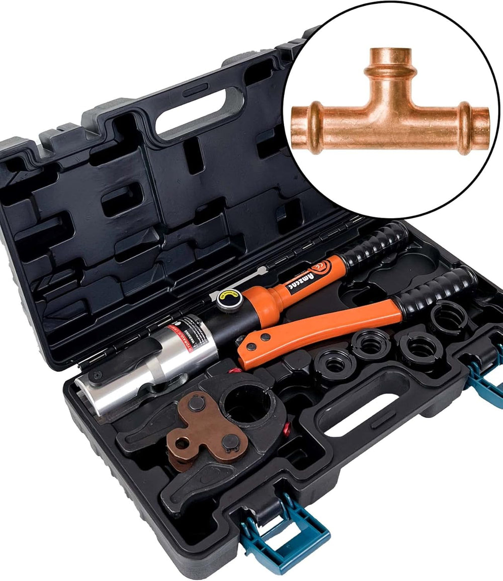 AMZCNC Profi Presszange (hydraulisch) Presswerkzeug V-Kontur 12-15-18-22-28 Set Presswerkzeug HPZ mi