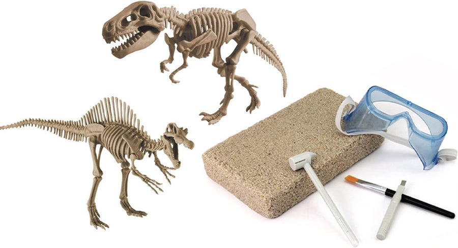 Grosses 2in1 Dinosaurier Ausgrabungsset mit Werkzeug Spinosaurus und Tyrannosaurus Rex in schwerem S