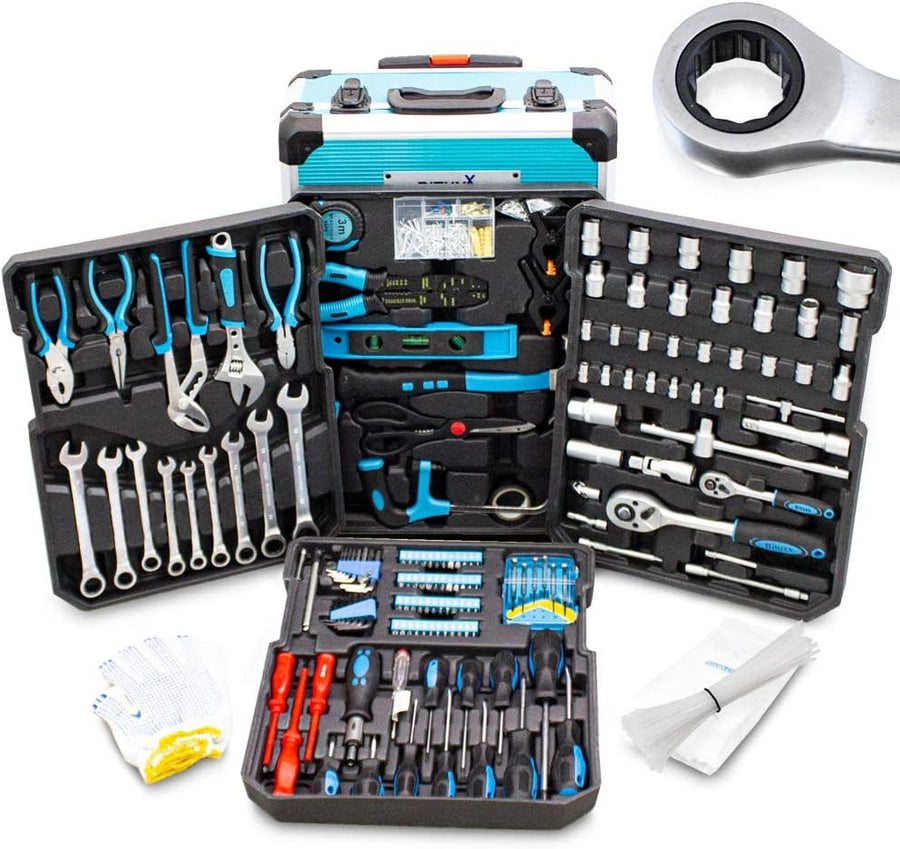 MASKO® Werkzeugkoffer 1299-teilig gefüllt | Werkzeugset im Aluminiumkoffer | Werkzeugkasten mit Roll