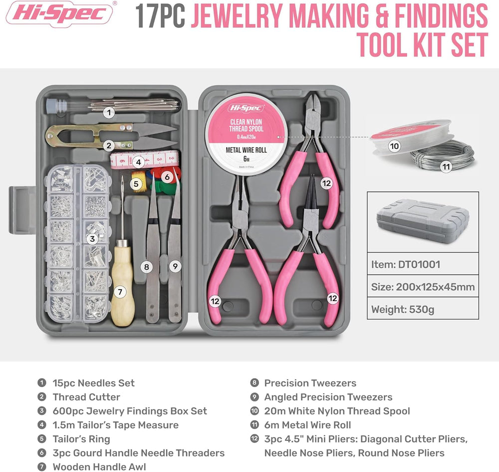 Hi-Spec 17tlg. Schmuckherstellungsset mit Werkzeugen und 600tlg. Zubehörset. Zangen und Draht für ha
